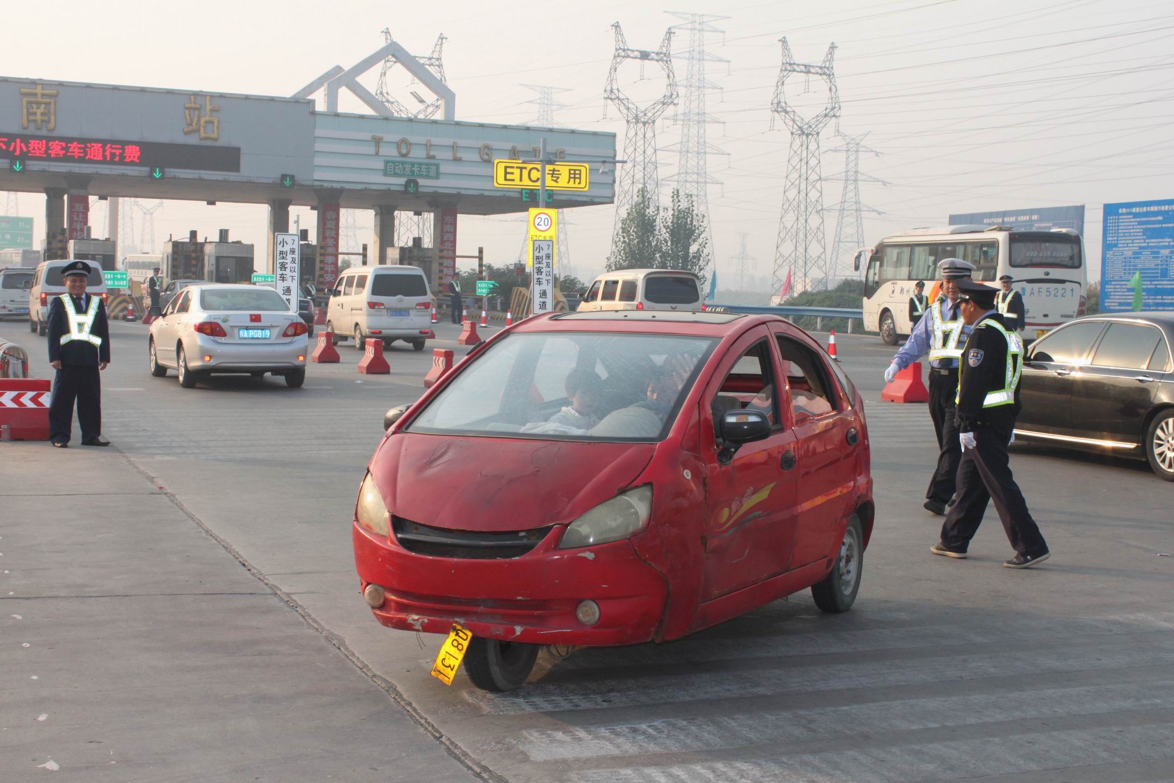 月1日上午7时55分,在机场高速南站,一辆老人助力车要上高速通行,被执勤民警拦住劝回。