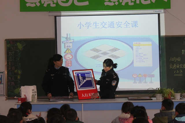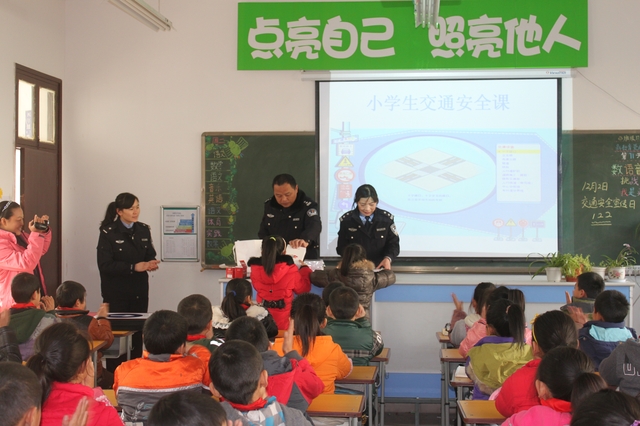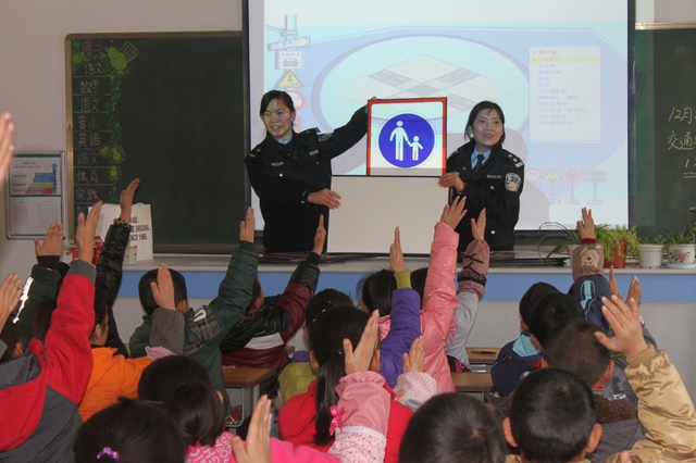 当日上午,副支队长陈承坤、宋海洋等4名民警带着为学生们精心准备的礼物走进港区实验小学四年级教室,热情等待的小学生随之报以持久热烈的掌声。陈承坤副支队长首先介绍了全国目前的交通形势和122交通安全日的意义;接着收看了交通安全公益宣传片;之后宋海洋副支队长带领小学生认识、学习3类13个常见交通标志,并组织了抢答比赛;最后,民警向每位小学生赠送了笔记本、钢笔等学习用品。该班班主任号召全班学生,将作为全校的交通安全宣传员模范遵守交通法规,向其他学生宣传所学到的交通安全常识和法律法规。