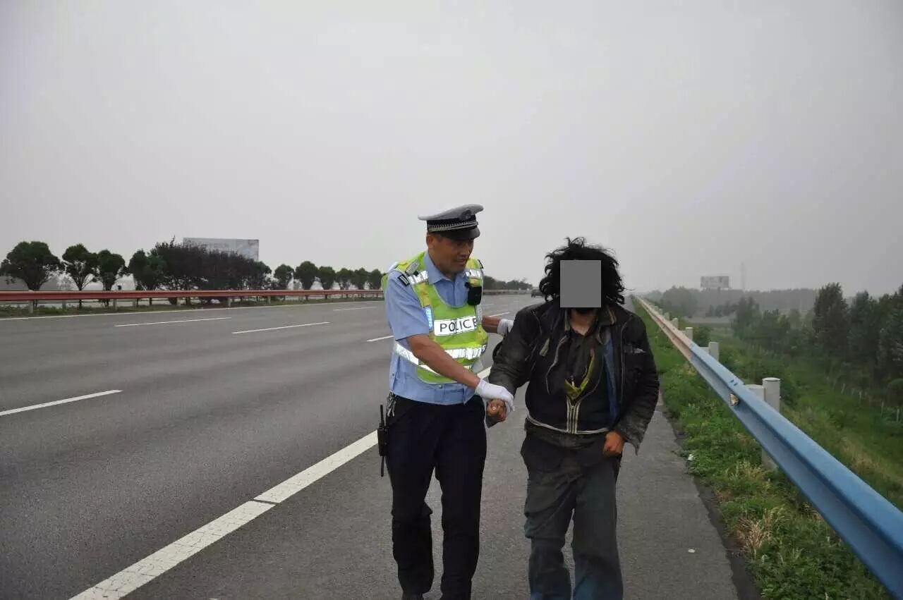 当日下午17时许,四支队事故大队长杨中华带队巡逻至京港澳高速公路523公里西半幅附近,发现一名疑似流浪汉的男子蹲在超车道中央护栏板旁,轿车不时从他身边高速驶过,情况及其危险,随时都有发生撞人事故的可能。杨中华迅速下车,将其拉至路肩应急车道,在沟通过程中发现该男子精神不正常,取得信任后决定将其带至四支队。