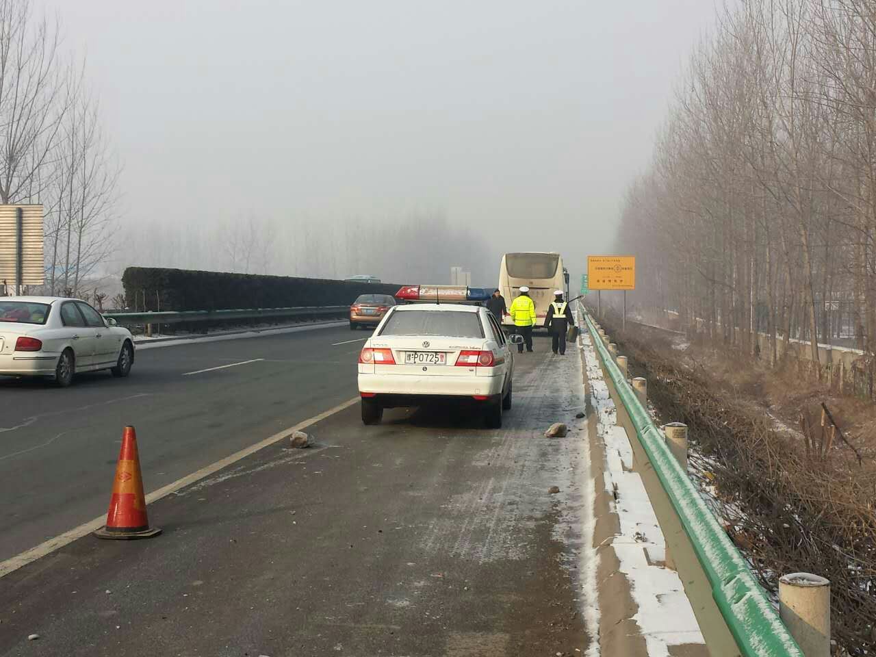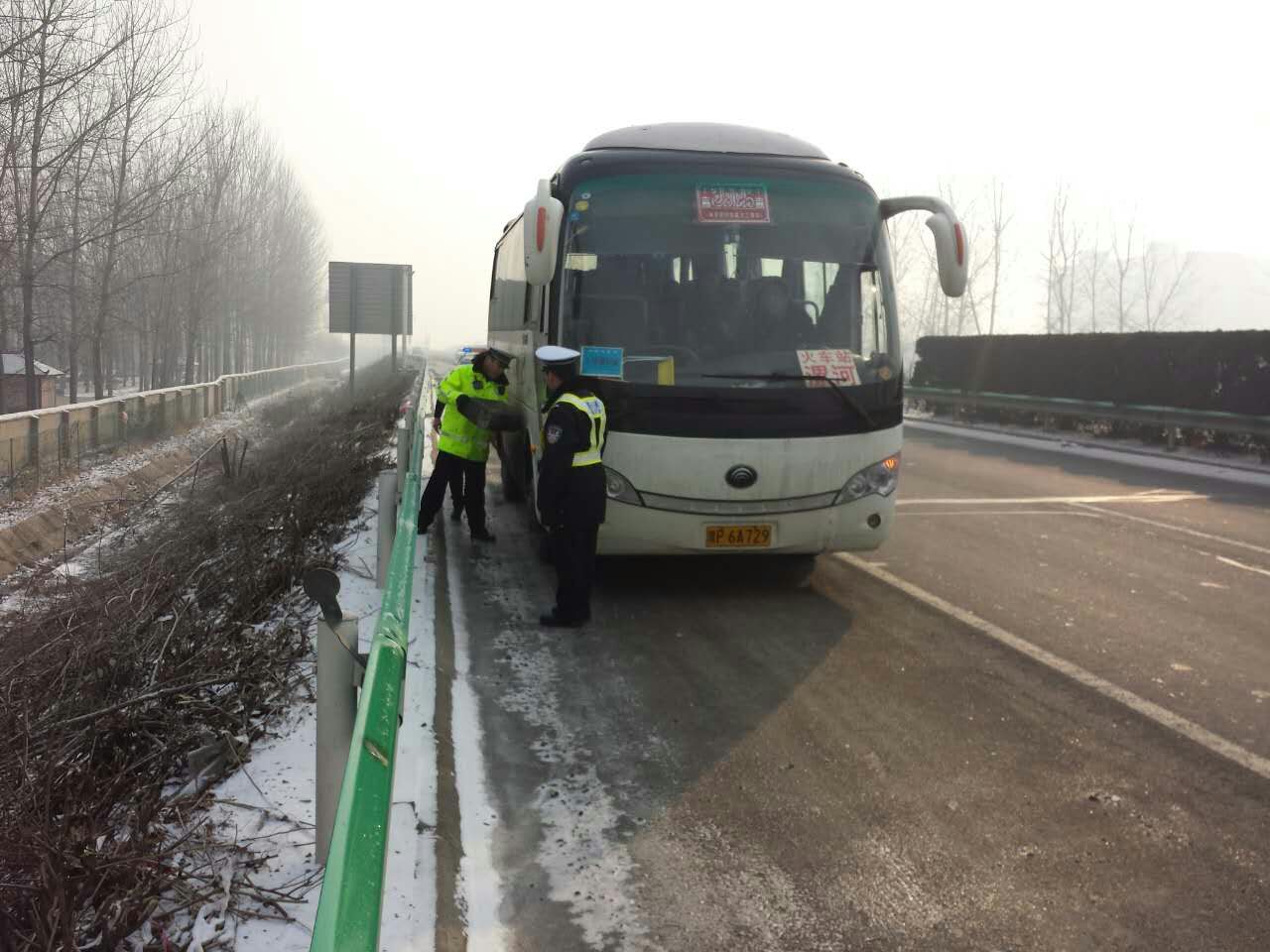 2月1日上午10时30分许,高速一大队二中队中队长杜金涛带领民警陈奎林、邹光、实习生史根源在辖区路段开展春运巡逻巡查任务过程中,在谭庄服务区附近发现一辆大客车停在应急车道内,应急灯开启,不时有乘客下车,十分危险。时值车流高峰期,情况十分危急,民警赶紧过去查看,经查:该客车驾驶员夏某驾驶客车从沈丘到漯河送外出务工人员返乡,由于班线繁忙加之一时疏忽竟忘记加油,以至于车辆半路断油抛锚在高速公路上。了解情况后,中队长杜金涛立即增派巡逻警力赶到事发现场首先安抚乘客情绪,将年纪偏大和携带儿童的乘客带至谭庄服务区妥善安置,并积极协调加油站为该客车送来应急油料。11时25分,在巡逻警车护送下该客车安全到达谭庄服务区。12时20分,该客车驾驶员夏某打来电话说已经将所有乘客安全送至目的地并一再致谢周口高速交警热情周到的便民服务。