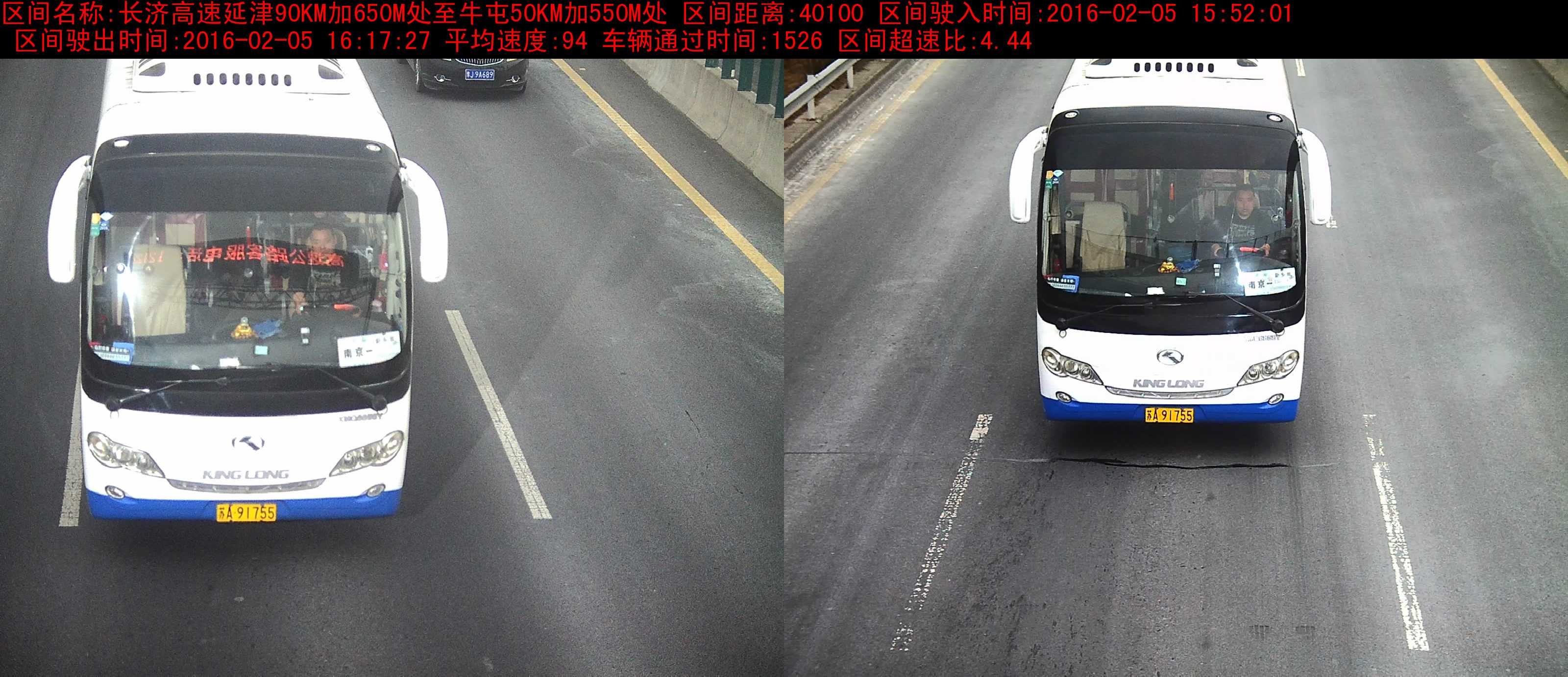 苏A91755大型客车区间超速