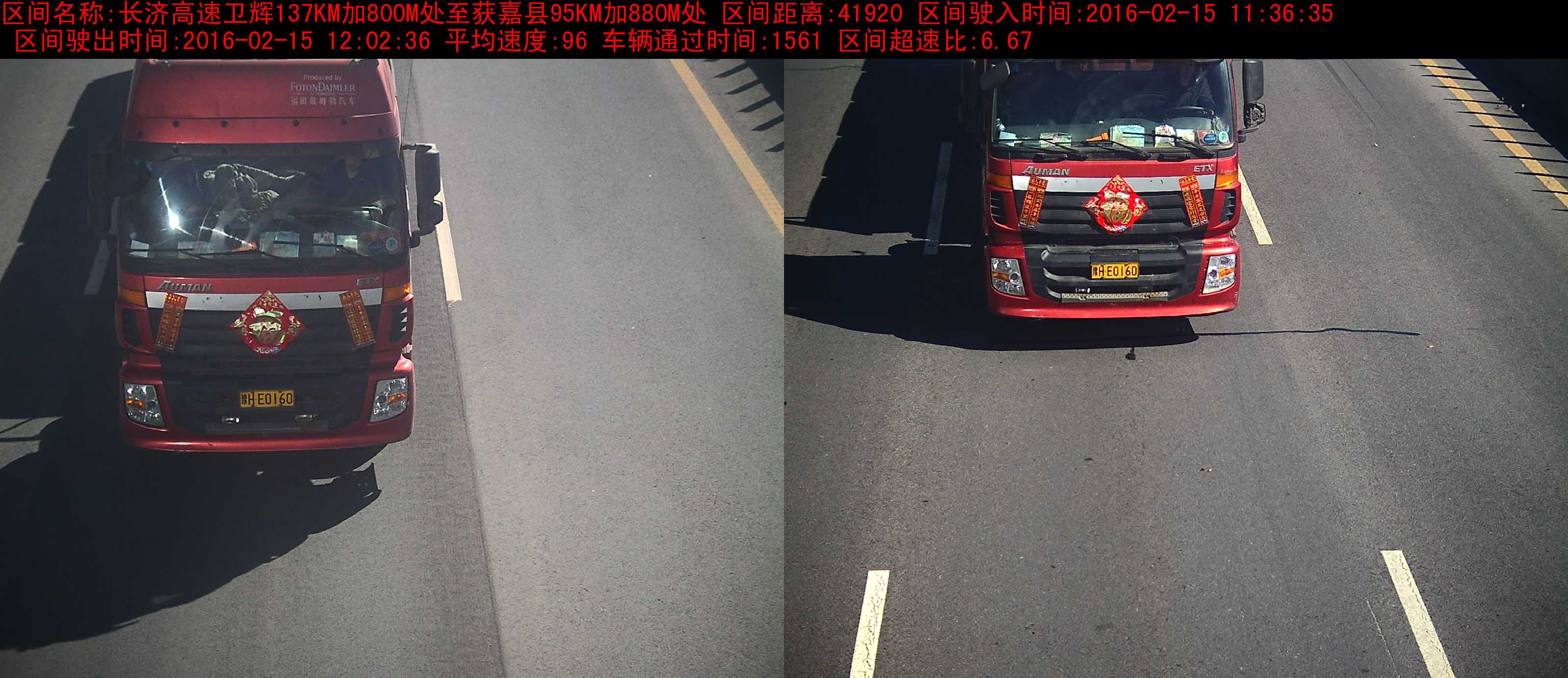 豫HE0160大型货车区间超速