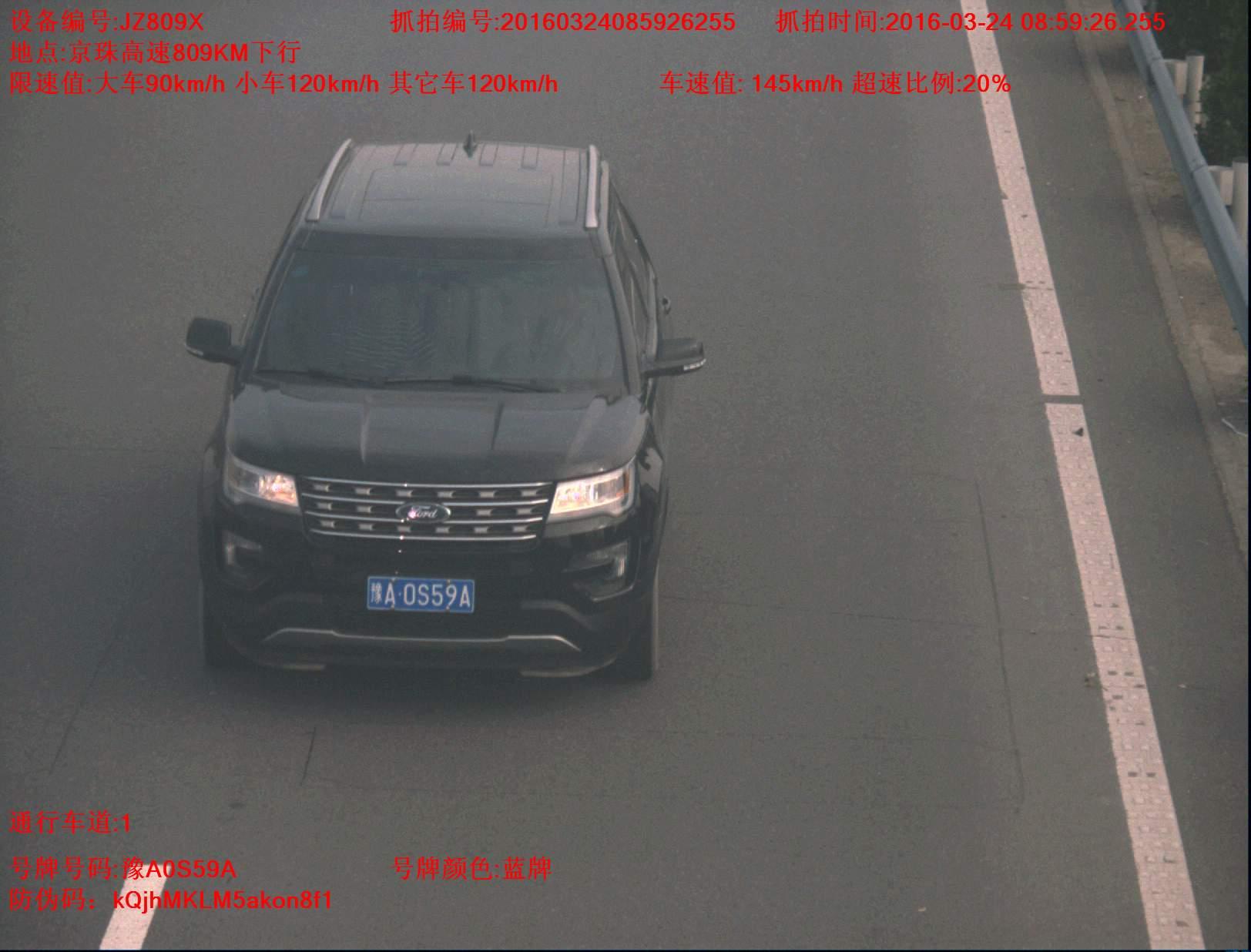 豫A0S59A小客车 超速20%
