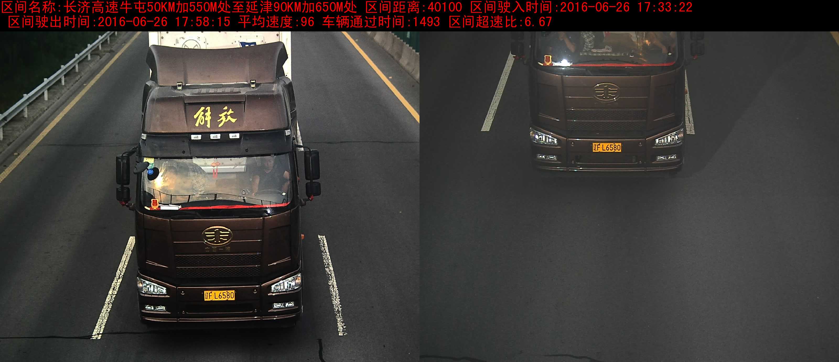 辽FL6580大型货车区间超速6.67%,罚款200,记6分
