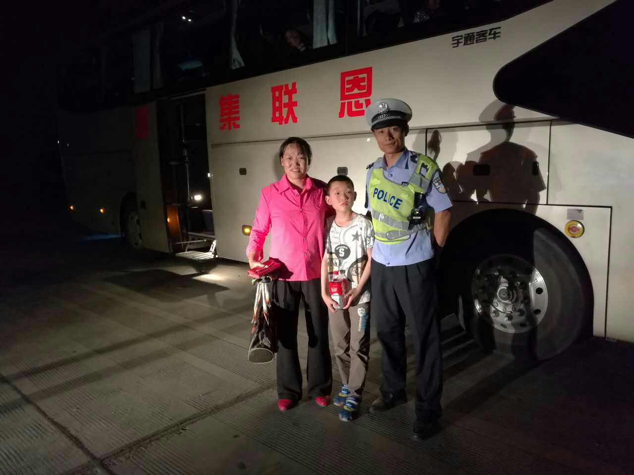 鉴于这种情况,民警决定从两方面入手,一是上报总队,请求我们的兄弟单位四支队注意发现并拦截到该颜色大巴车进行盘查,看能否与男孩的妈妈取得联系;二是继续在服务区进一步巡查,看该车是否还在服务区,因为遵照规定,客车夜间2时到5时,不允许在高速上行驶。于是民警分别相对方向展开巡查,并通过警报器喊话等方式,最终在服务区一角落找到了一辆蓝色大巴车。这时远处传来了一阵哭喊,上面经询问得知,她的孩子找不到了,经过核实,她正是孩子的妈妈。