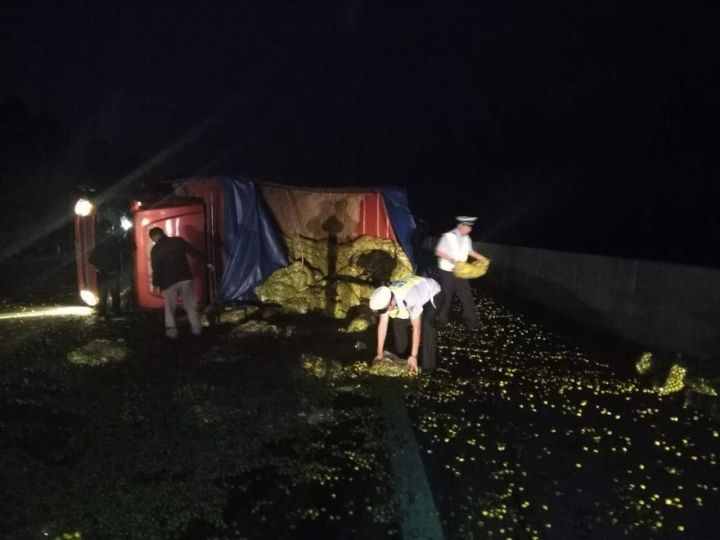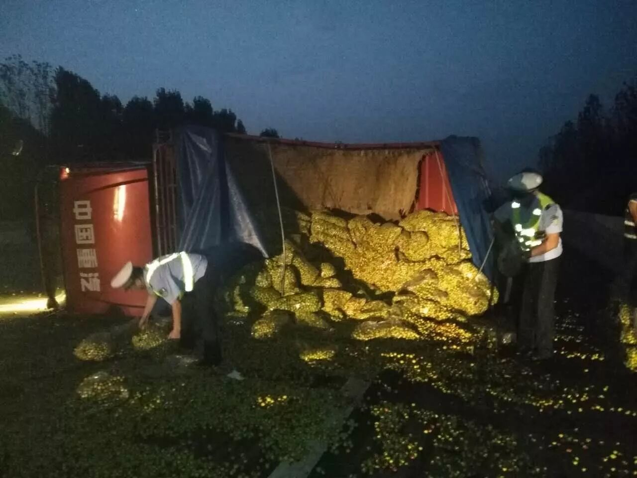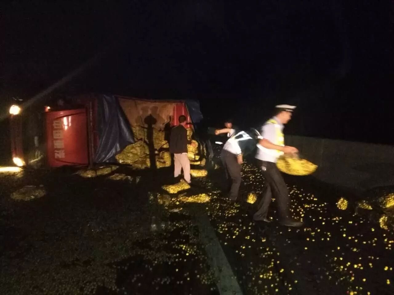 9月24日凌晨,连霍高速公路448KM处有一货车因爆胎侧翻,致5吨多大枣散落一地。在商丘高速交警的热心帮助下,滚落一地的大枣全部重新装箱运走。