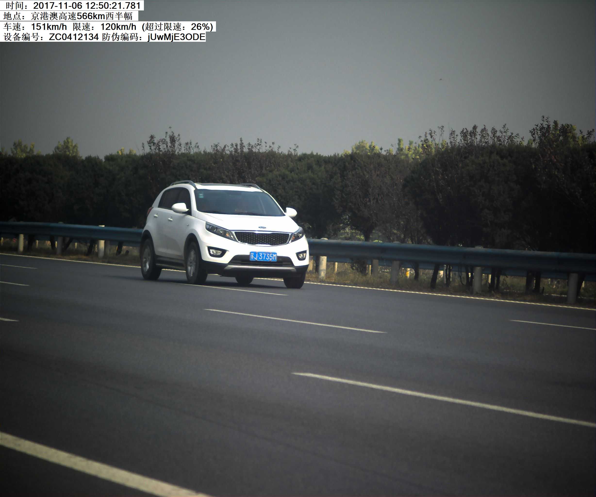 2017年11月6日12时50分,苏J3735M小型汽车在G4京港澳高速566KM西半幅,超速26%,罚200元记6分。高速交警温馨提示:请依法、安全、文明行车,平安出行!