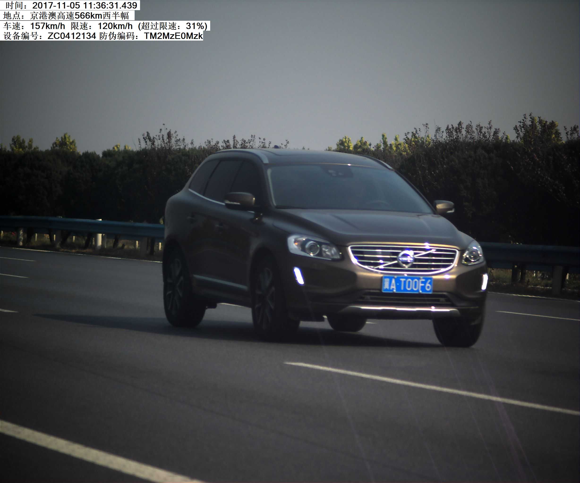 2017年11月5日11时36分,冀AT00F6小型汽车在G4京港澳高速566KM西半幅,超速31%,罚200元记6分。高速交警温馨提示:请依法、安全、文明行车,平安出行!