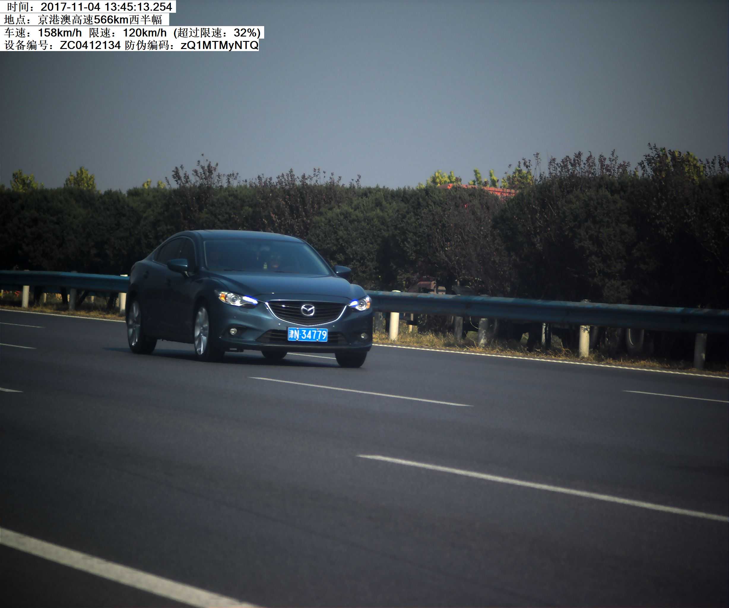 2017年11月4日13时45分津N34779小型汽车在G4京港澳高速566KM西半幅,超速32%,罚200元记6分。高速交警温馨提示:请依法、安全、文明行车,平安出行!
