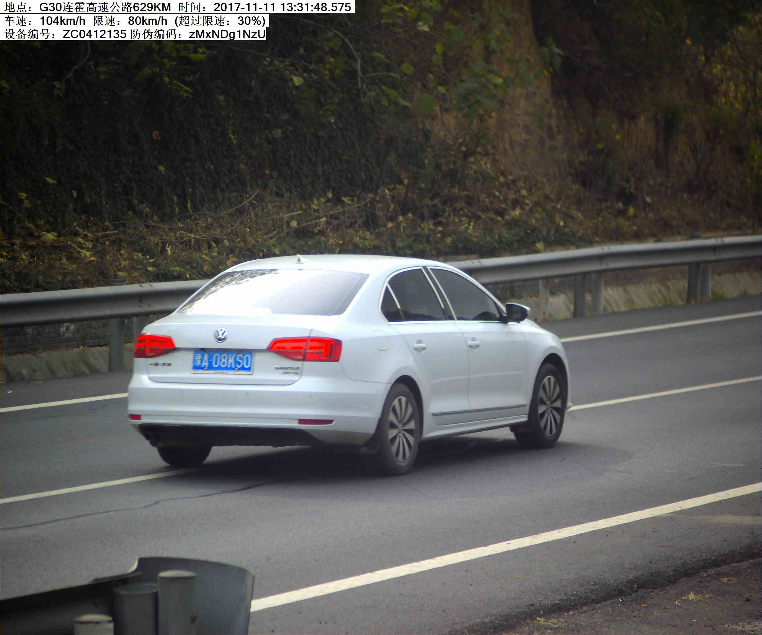 豫A08KS0小型客车超速30%