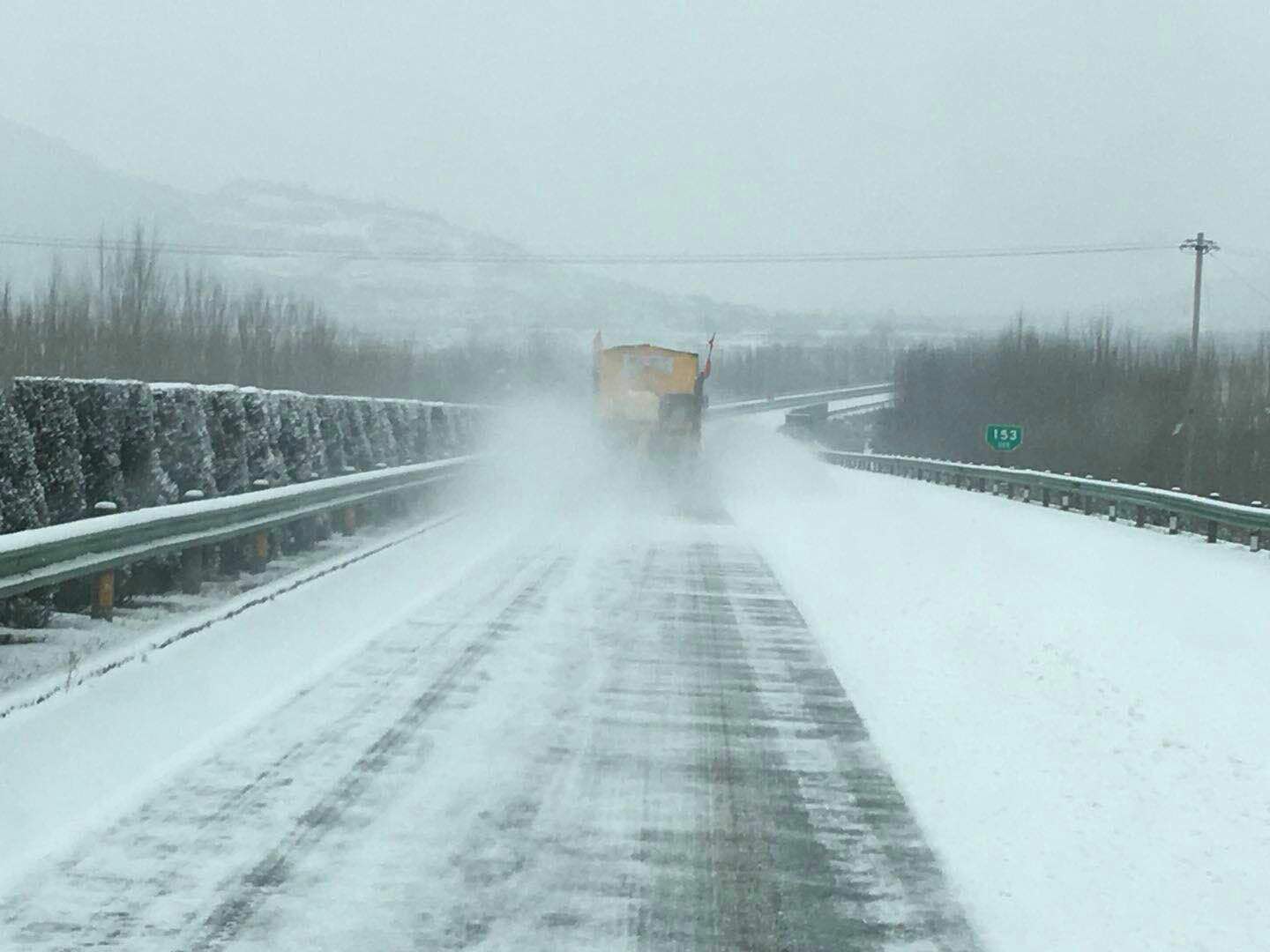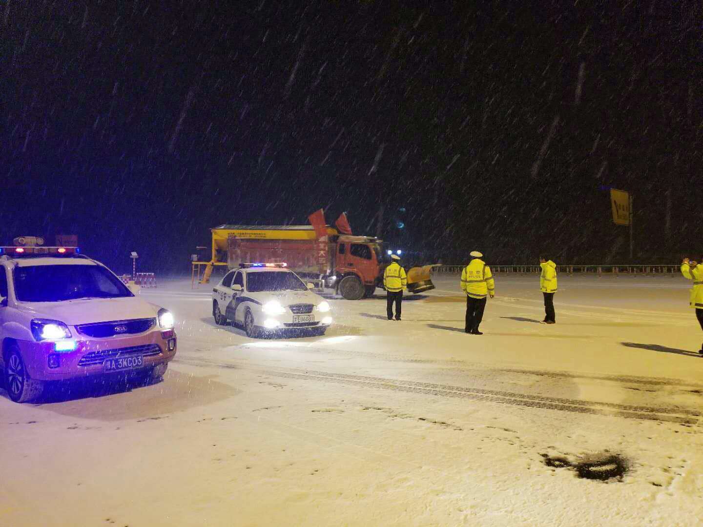 2018年1月3日下午17时,应山西高速交警要求,按照协作协议开始封闭山西方向道路,今天凌晨3时36分,封闭全线。0时开始降雪,降雪后开始启动预案融冰除雪,并通知路政及养护部门,开始对辖区路面重点部位进行撒盐除雪工作,电子显示屏提示:雨雪天气减速慢行、道路封闭请提前下站分流,同时抽调警力开始不间断巡逻。