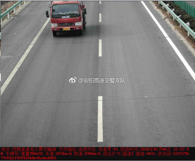 - #文明交通·安全伴您行# 【违法曝光台】2018年1月6日12时57分,冀T86691货车在范辉高速68公里+650米处违反载货汽车在高速公路超速未达20%的行为,扣6分,罚款200元。高速交警温馨提示:请依法、安全、文明 ...