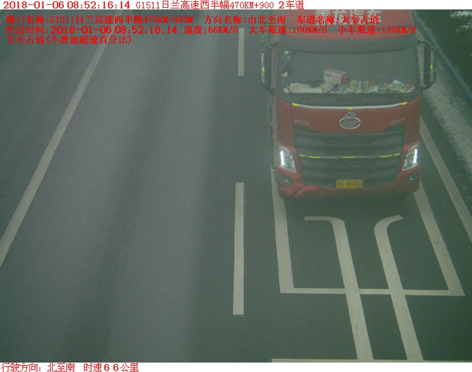 【违法曝光台】2018年1月6日08时52分,鲁H88A80大型汽车在日兰高速西半幅占道行驶,罚款200元,记3分。高速交警温馨提示:请依法、安全、文明行车,平安出行!