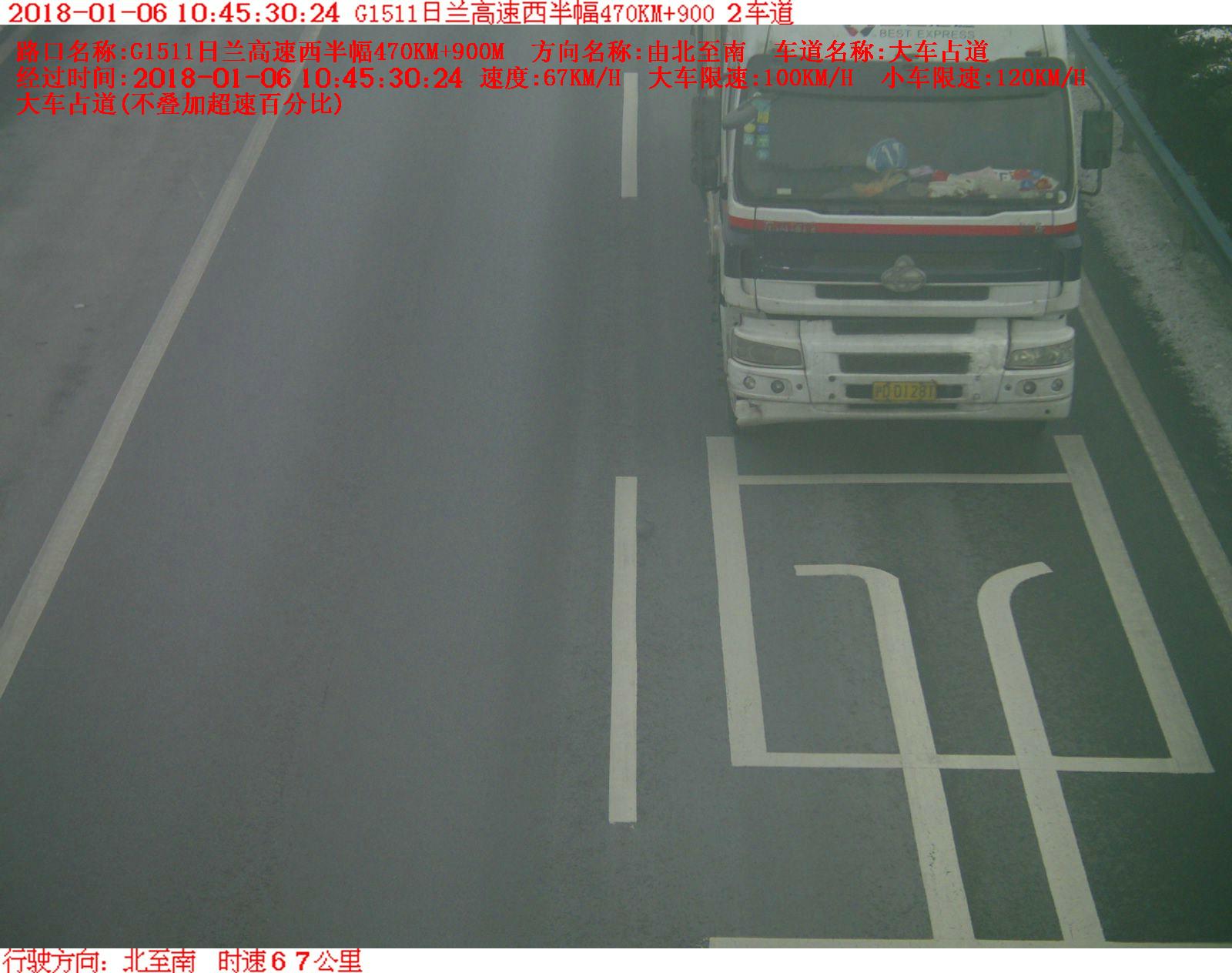 >> 【违法曝光台】2018年1月6日10时45分,沪DD1281大型汽车在日兰高速西半幅占道行驶,罚款200元,记3分。高速交警温馨提示:请依法、安全、文明行车,平安出行!