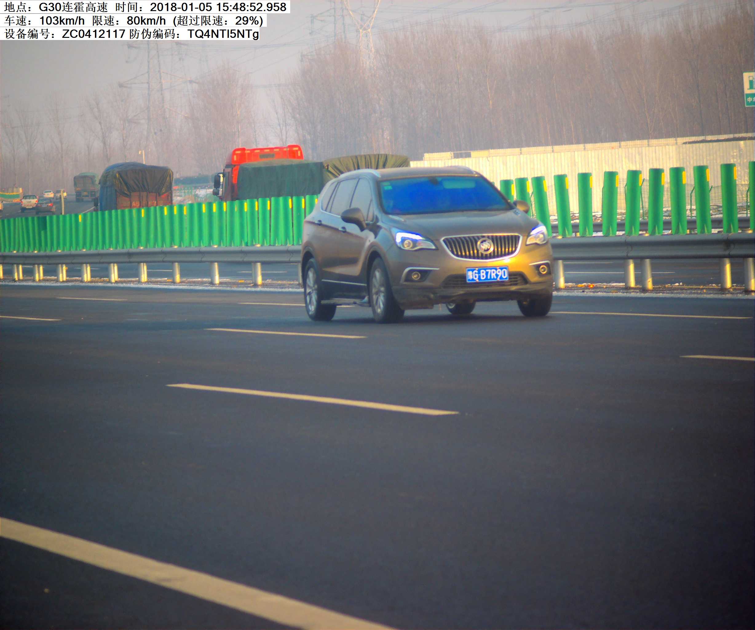 2018年1月5日15时48 分,豫GB7R90小型汽车在连霍高速K548处超速29%罚款200元,记6分.高速交警温馨提示:请依法、安全、文明行车,平安出行!