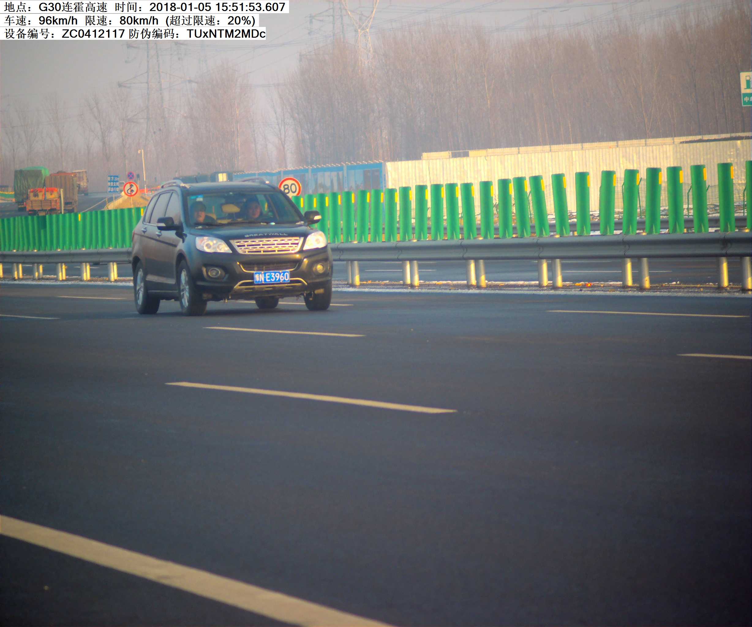 2018年1月5日15时51分,豫NE3960小型汽车在连霍高速K548处超速20%罚款200元,记6分.高速交警温馨提示:请依法、安全、文明行车,平安出行!