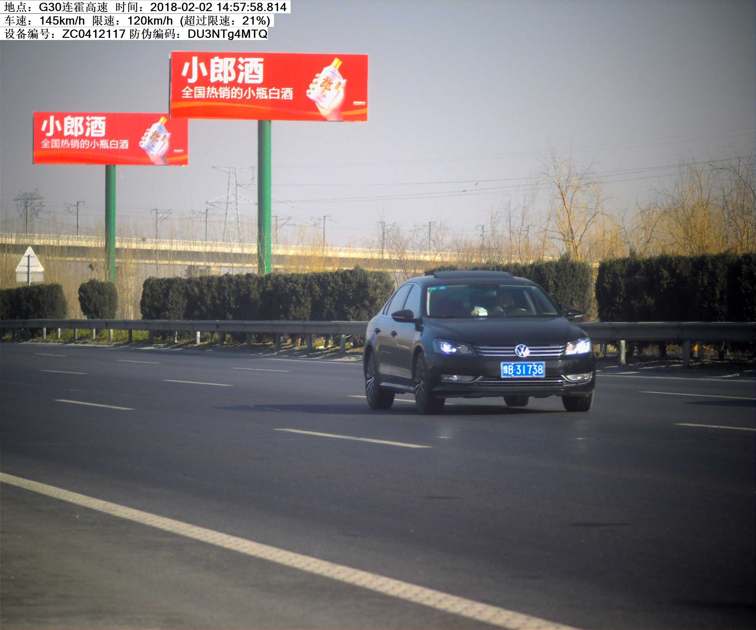 2018年2月2日14时57分,豫B31738小型汽车在连霍高速K546处超速21%罚款200元,记6分.高速交警温馨提示:请依法、安全、文明行车,平安出行!