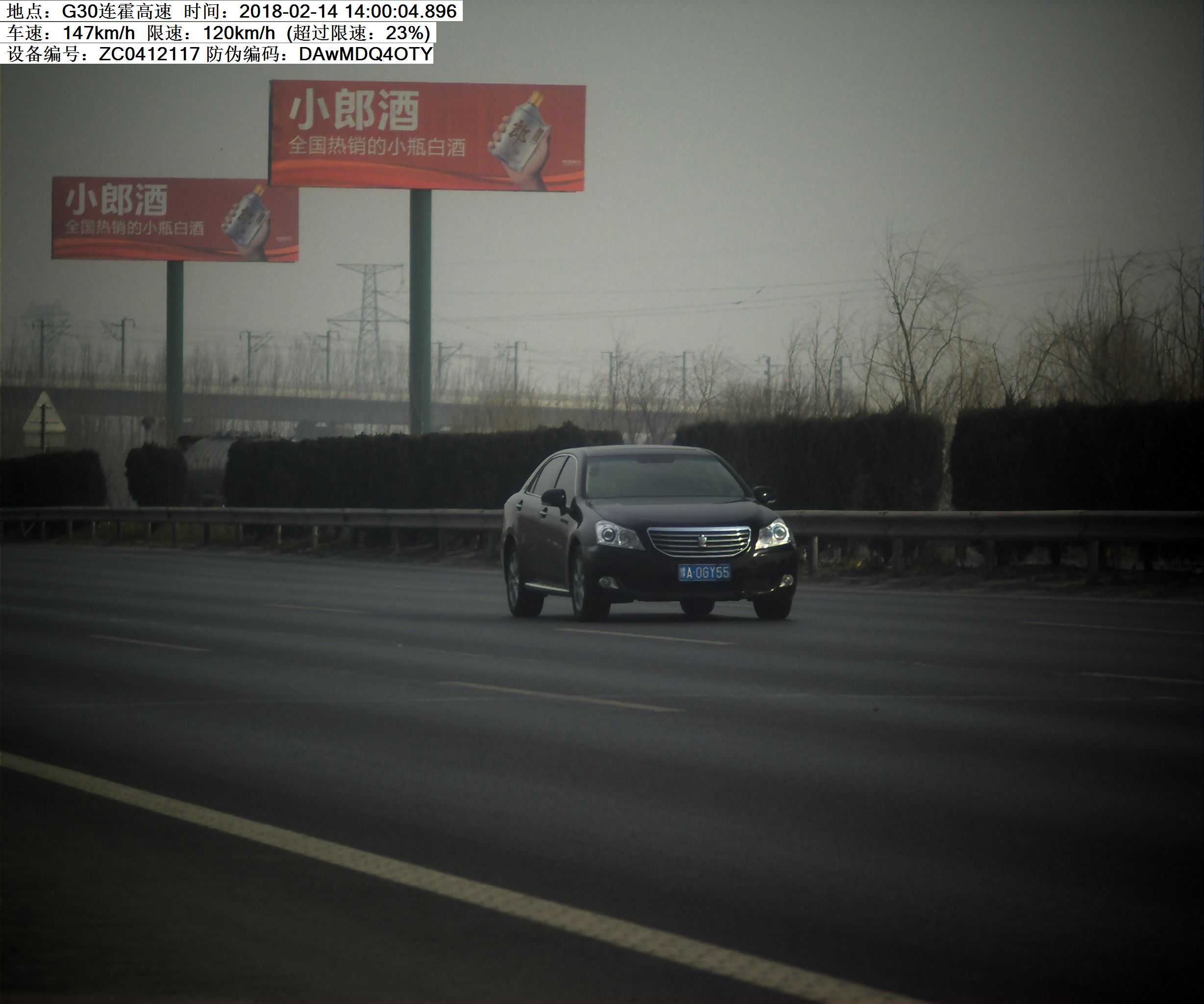 2018年2月14日14时0分,豫A0GY55小型汽车在连霍高速K546处超速23%罚款200元,记6分.高速交警温馨提示:请依法、安全、文明行车,平安出行!