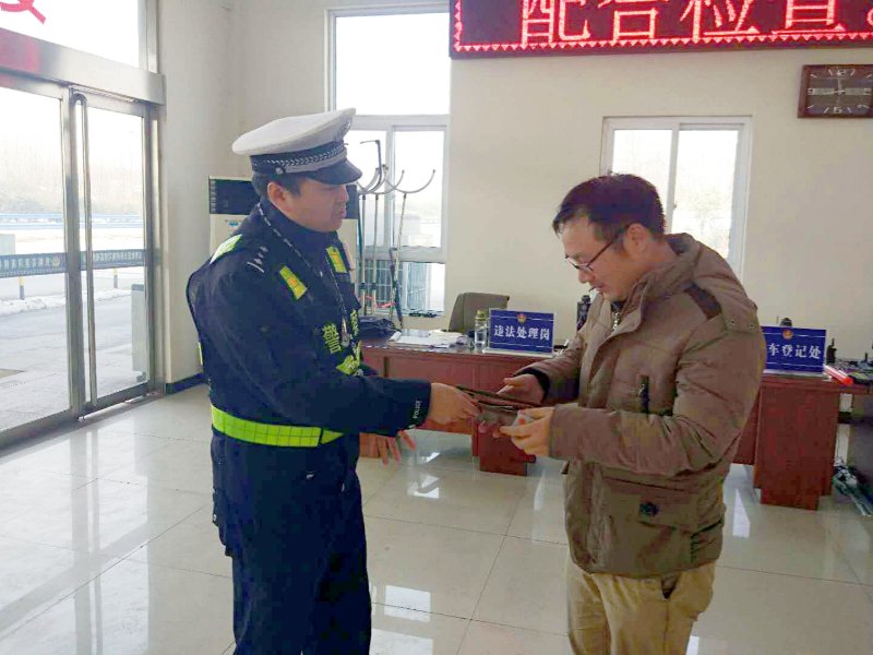 经过近两个小时的耐心等待后,失主终于返回省界公安检查站进行认领。执勤民警在仔细核对身份证与失主信息一致无误后,将钱包归还给失主赵永强。赵勇强说,刚才在过省界时开了一下车门,谁想放在车门置物箱的钱包竟然掉了出来。钱包内不仅有现金还有重要的证件和银行卡,如果丢失后果将不堪设想。赵永强在感激之余主动掏出两张百元人民币表示感谢,但被执勤民警严词拒绝。执勤民警善意的提醒失主,春运高峰车流量大,在做好安全驾驶的同时一定要带好随身物品。