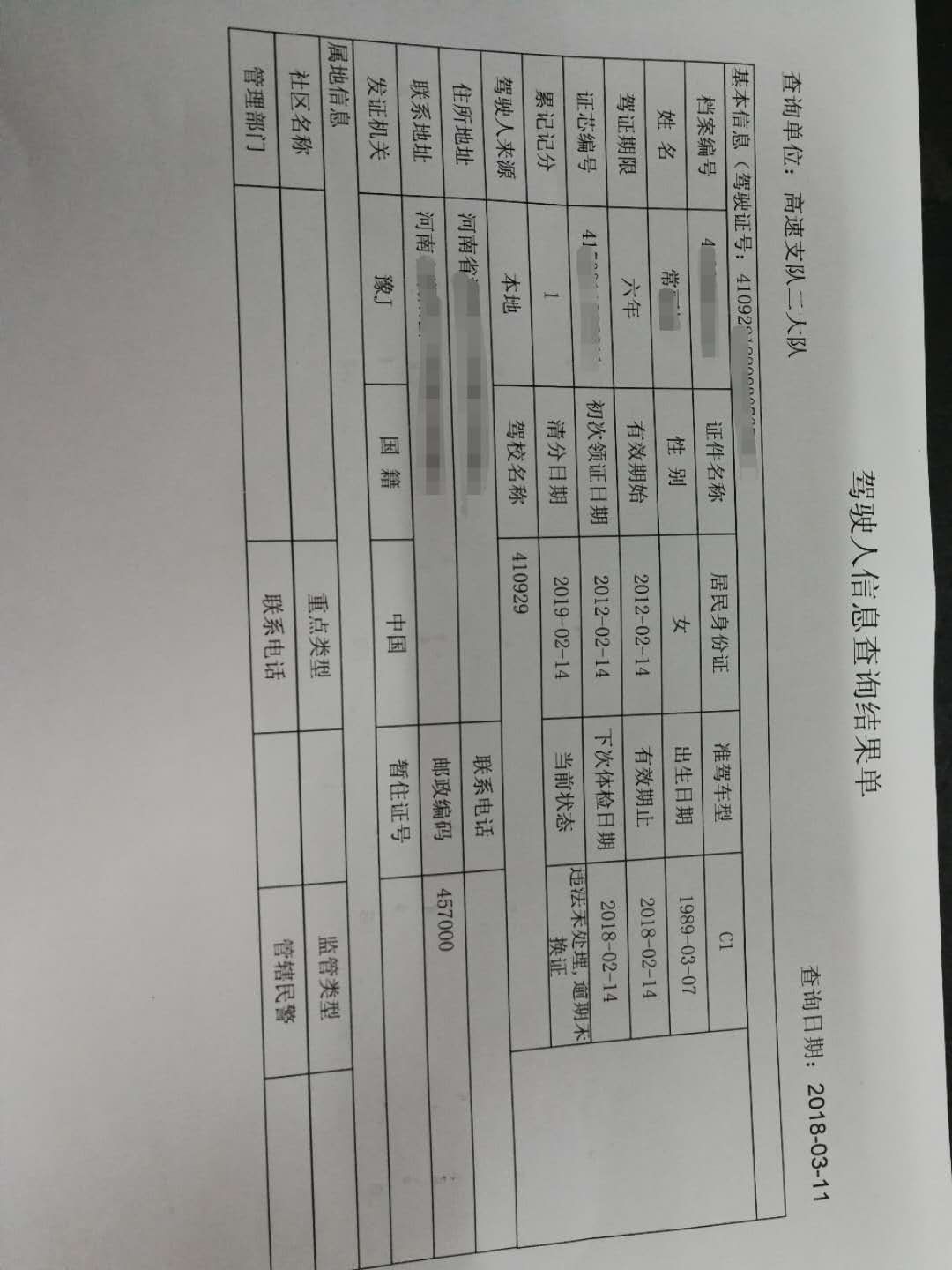 3月11日11时,一辆郑州牌照的小型轿车经过大广高速滑县收费站"两会"安保卡点,被安阳高速交警支队二大队执勤民警拦停检查,辅警柴正细心查看该车女驾驶人的驾照,发现该女士驾照超过有效期25天,立即将证件交给带班民警进一步核实,公安网查询显示结果与驾照载明时间相符,执勤民警立即依法对驾驶人常女士进行处罚,并告知其抓紧时间去审验驾驶证,换证之前不要再开车了。