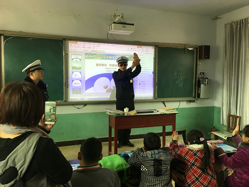 交通安全课上,为了让孩子们对交通安全知识便于理解和掌握。交警、路政队员们事先做好了充分的准备,认真选取讲解内容,利用精心制作的PPT向同学们展示了常见的各种交通设施所表示的含义,结合辖区道路内发生的几起事故案例,用通俗易懂的语言向同学们深刻的剖析了交通违法行为的严重危害。