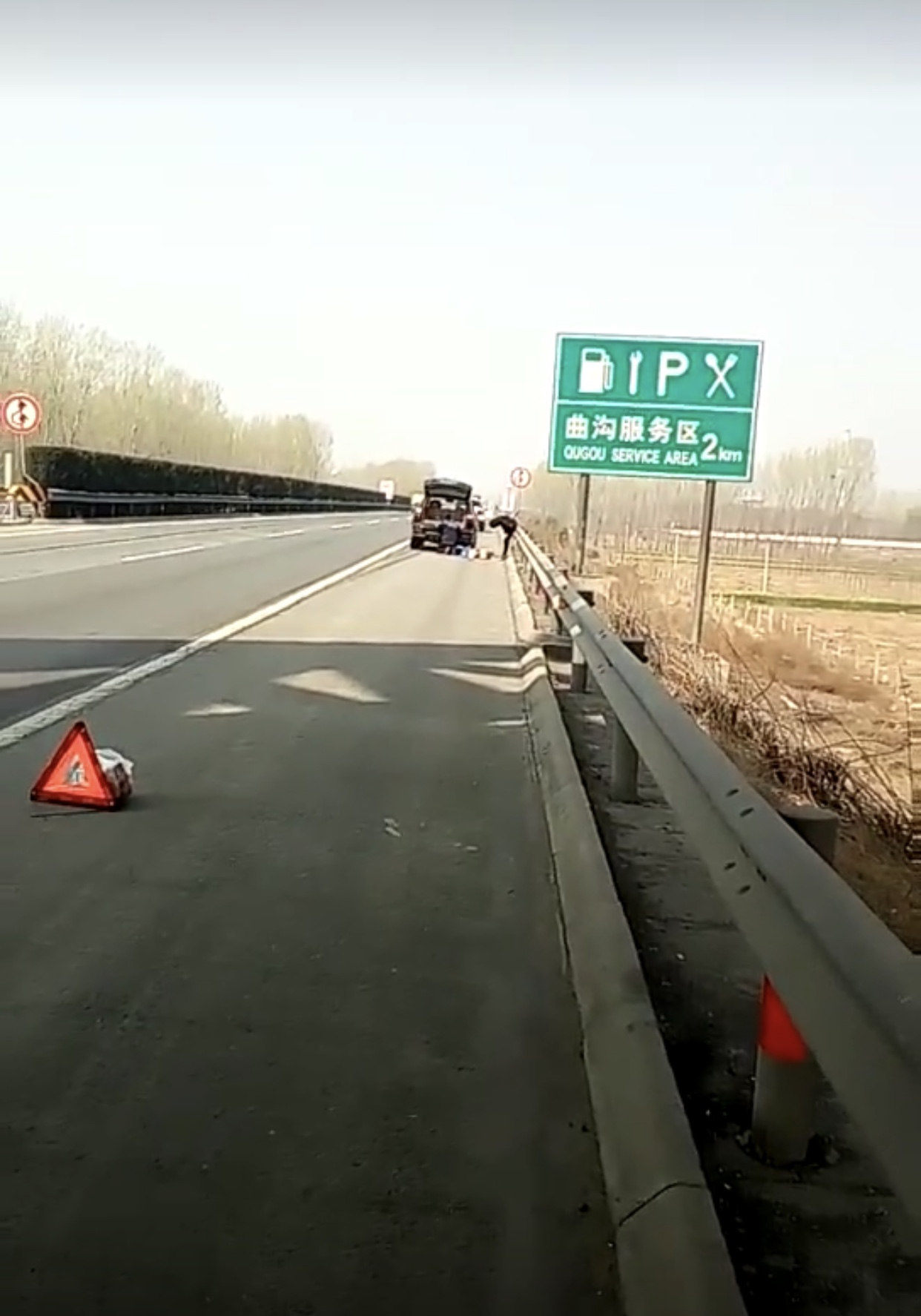 当日上午11时许,大队领导万光巡逻至南林高速K122处时,发现前方应急车道停着一辆黑色的小型轿车,车后方竖着三角警示牌,车旁站着一男子,过往车辆纷纷刹车避让,情况十分危险。万队立即停车上前询问。该司机称自己行驶到此处车辆右后车轮突然爆胎,自己又从未更换过轮胎,面对这种情况不知如何是好。