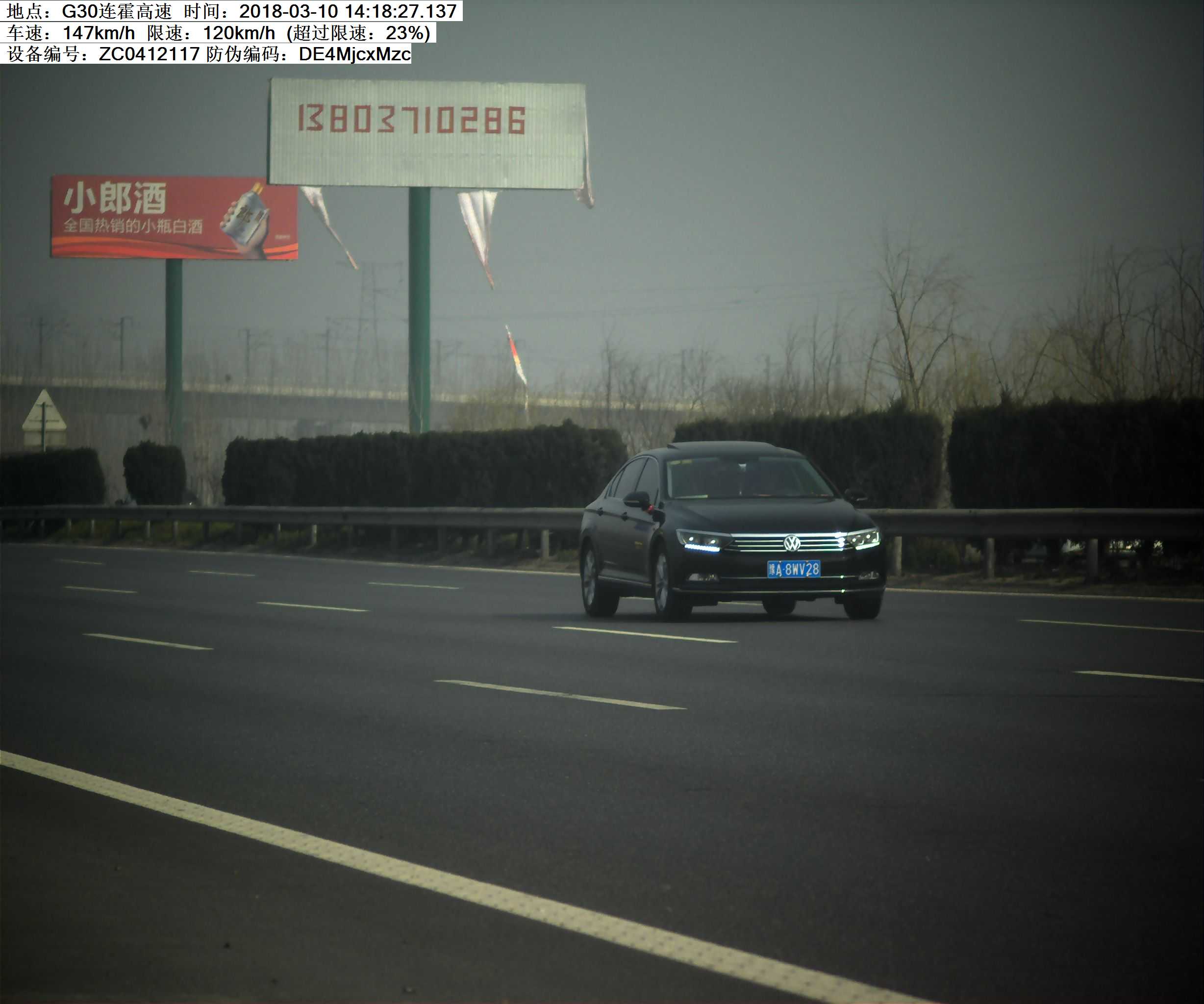 2018年3月10日14时18分,豫A8WV28小型汽车在连霍高速K546处超速23%罚款200元,记6分.高速交警温馨提示:请依法、安全、文明行车,平安出行!