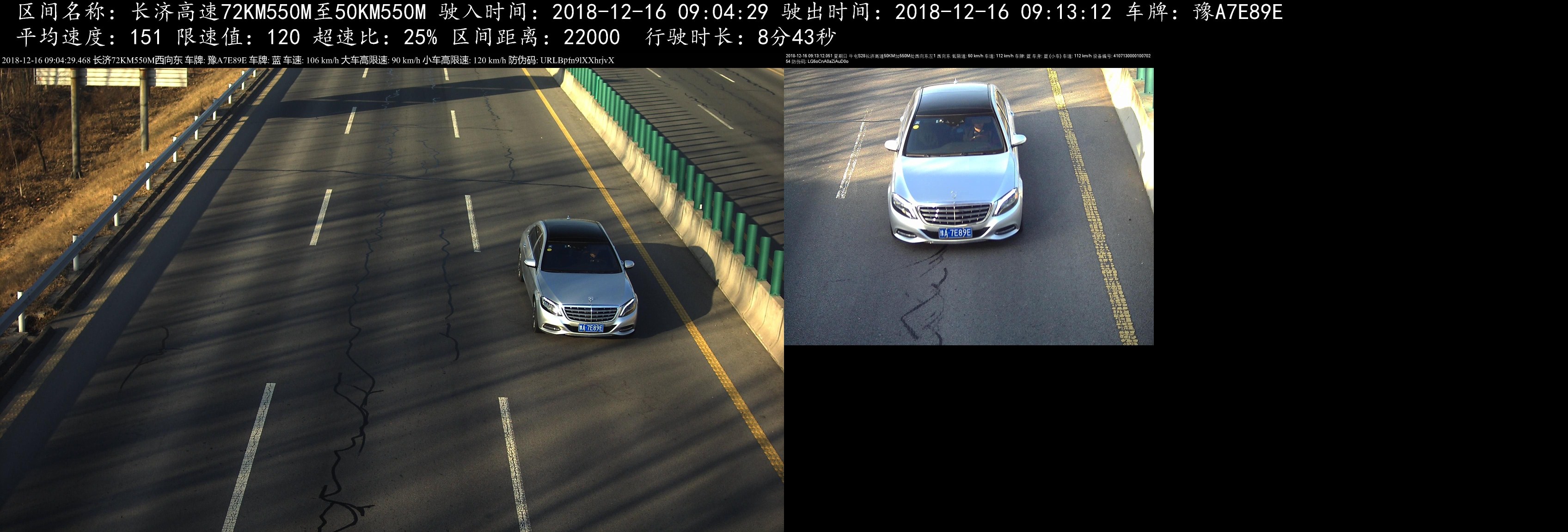 >> 豫A7E89E小型汽车区间超速25%,罚款200元,记6分。