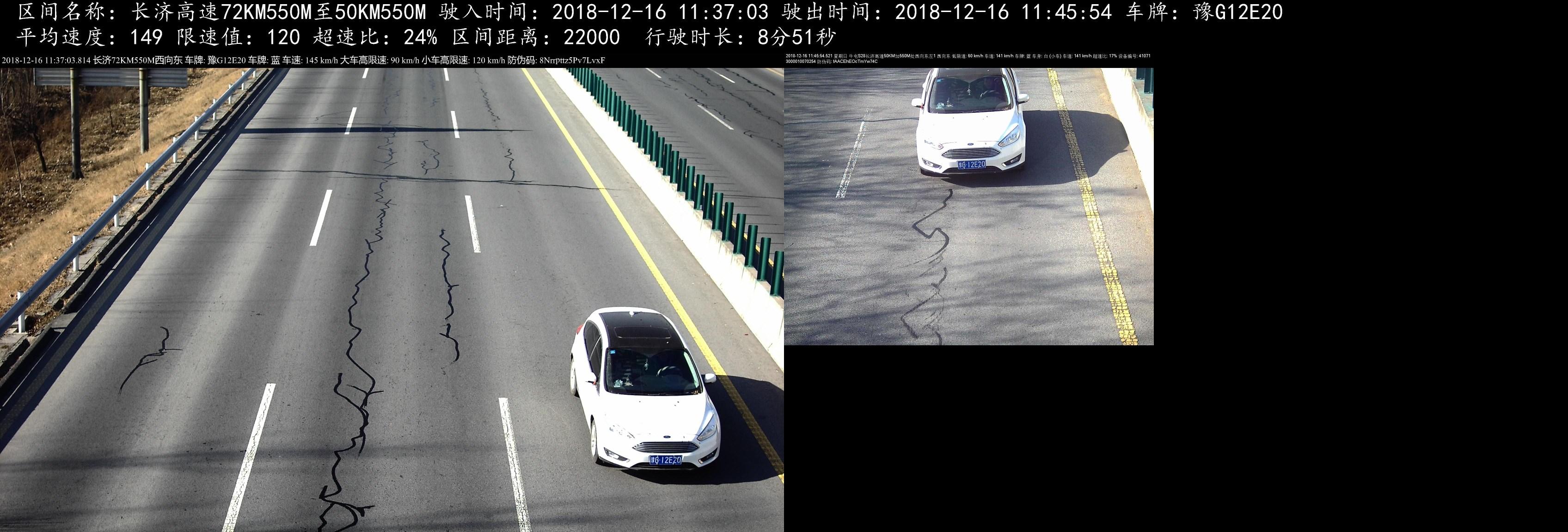 >> 豫G12E20小型汽车区间超速24%,罚款200元,记6分。
