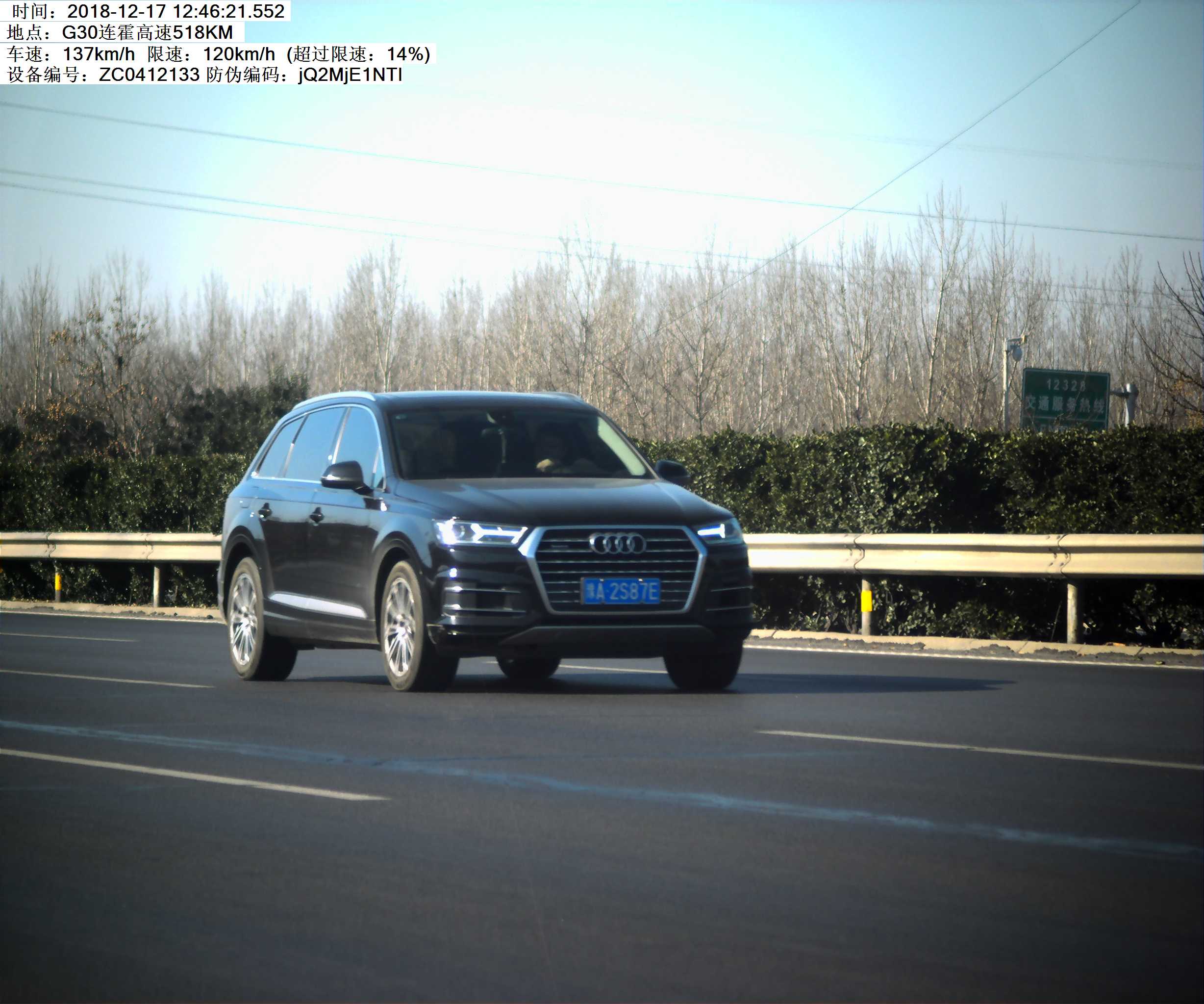 >> 豫A2S87E 小型汽车 超速14%