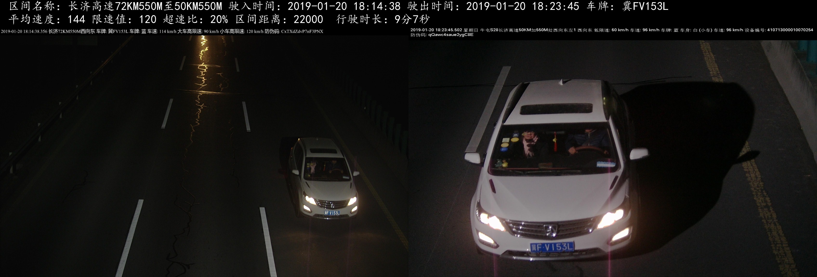 >> 冀FV153L小型汽车区间超速20%,罚款200元,记6分。