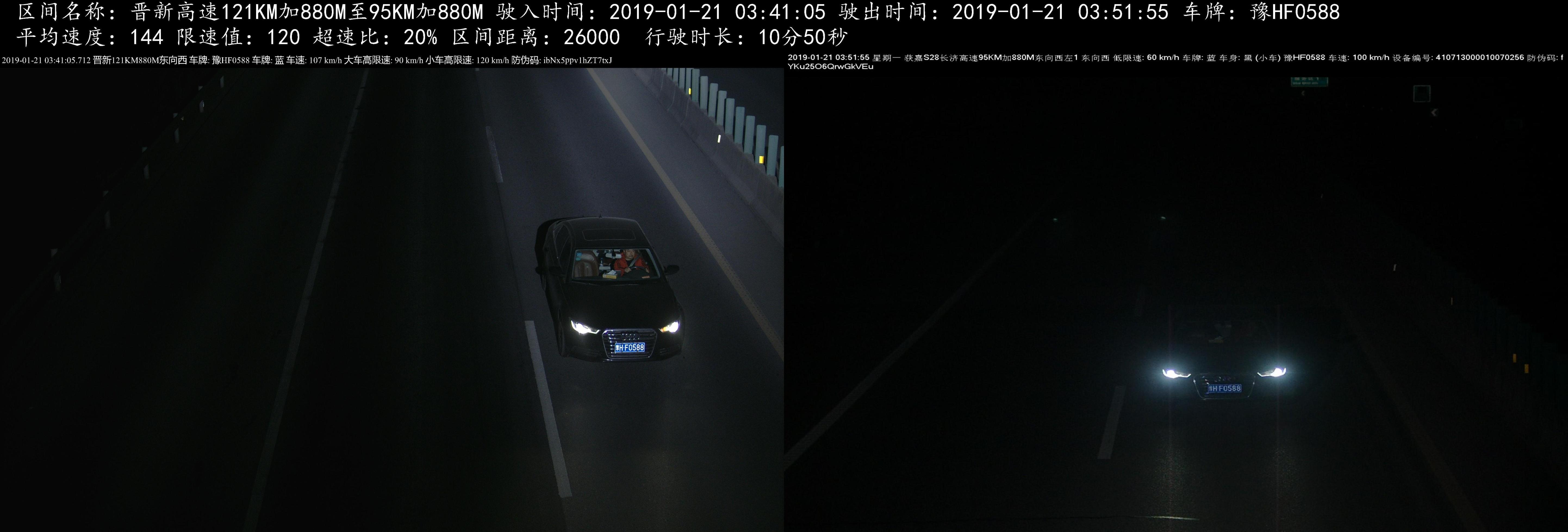 >> 豫HF0588小型汽车区间超速20%,罚款200元,记6分。