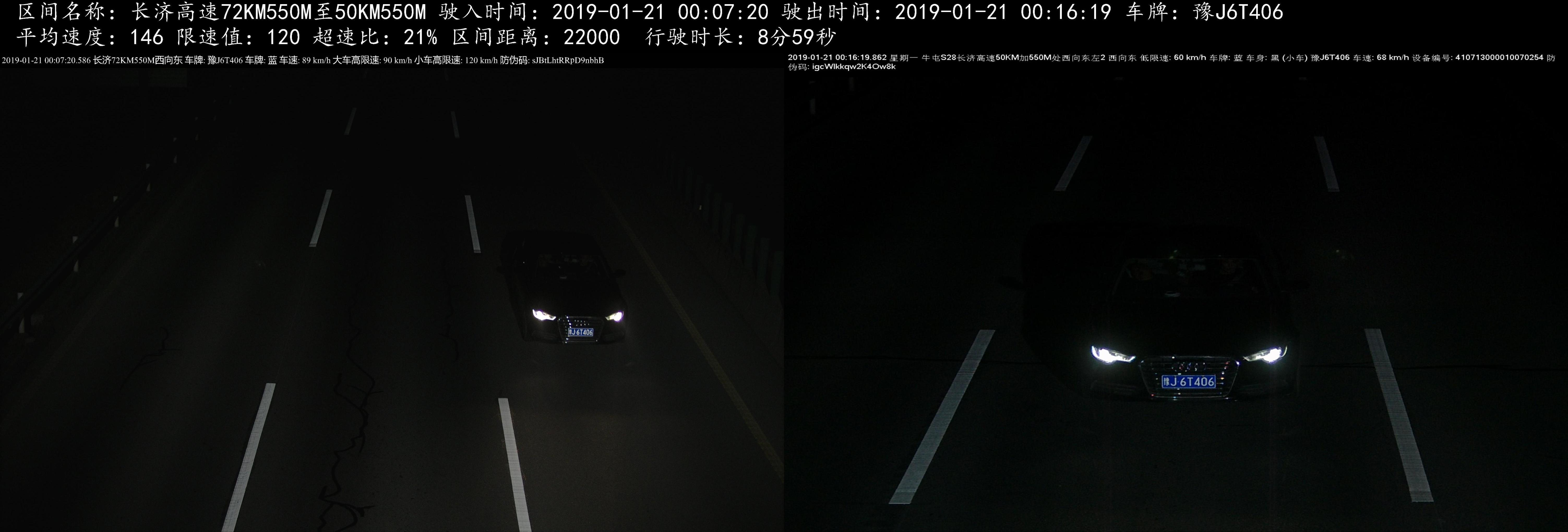 长济高速(新乡)违法曝光台:豫J6T406小型汽车,2019年1月21日00:16在长济高速72KM+550M处至50KM+550M处区间超速21%,罚款200元,记6分。高速交警温馨提示:请依法、安全、文明行车,平安出行!