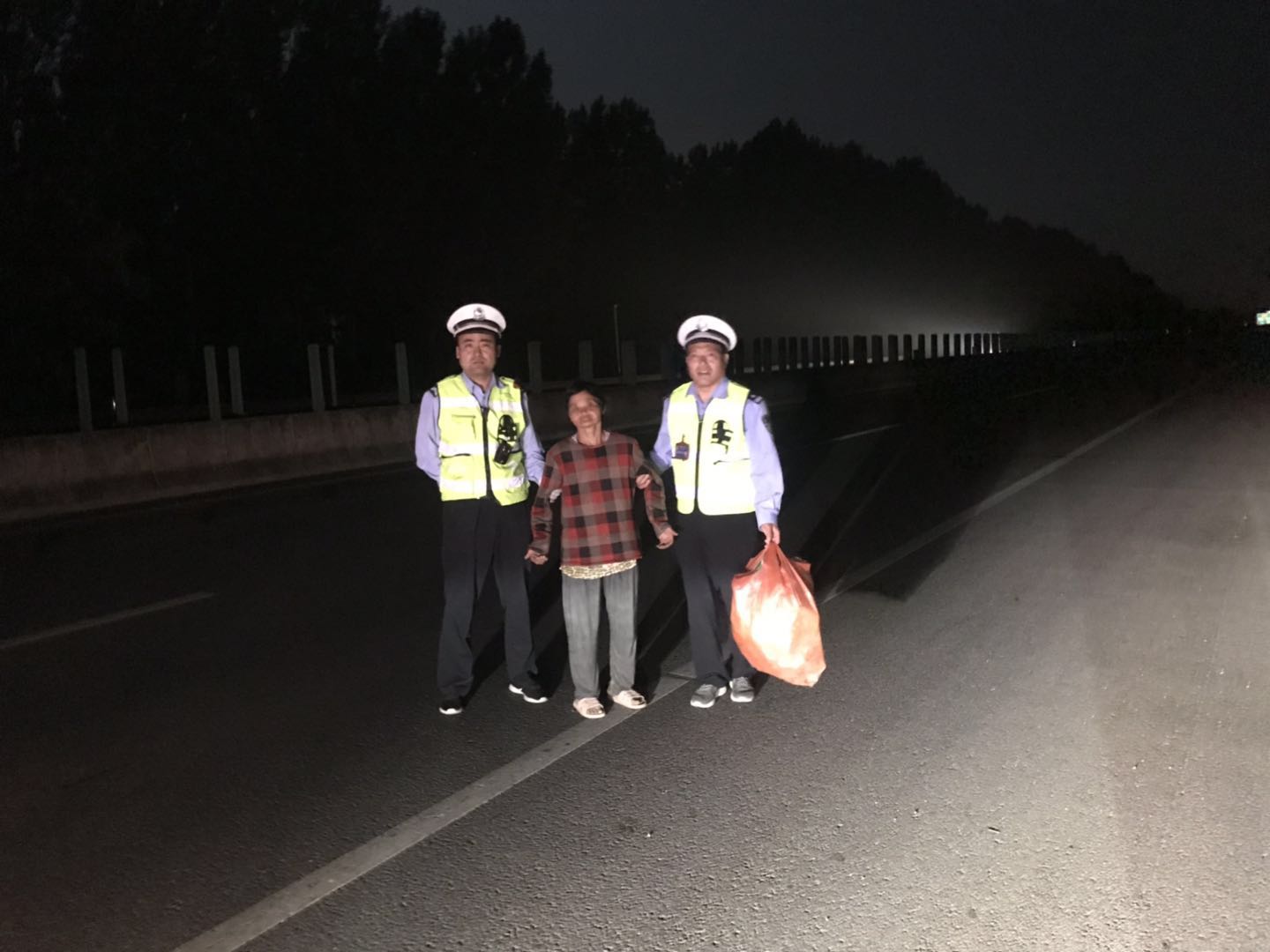 5月19日凌晨一点三十分许,安阳市高速交警二大队接到过路司机报警称:一行人在高速超车道游荡,凌晨时分,视线非常不好,多亏自己及时躲避,有效避免了一起惨祸发生。教导员常明云接警后意识到事情非常危急,立即带上队员朱峰、李旭超前往寻查。警车从安阳东往内黄方向行驶到83公里处时,发现一位老妇人坐在超车道上,怀里抱着一个大编织袋。队员李旭超赶快上前将其拉到车上,快速驶离高速公路,安置到队部休息。后经询问得知当事人是附近的村民平时拾荒补贴家用,精神偶尔失常。第二天早上,当事人在大队吃过早饭后,在队员朱峰、李旭超带领下经过走访后被送回了沿村台村。家属在村里也报了案,托亲戚朋友找了大半夜也没有结果,没想到这么快就被送了回来。家属对高速交警为民爱民的行为十分的感动,认识到行人上高速公路行走非常的危险,是重大的事故隐患,并且保证以后会对当事人严加管束。