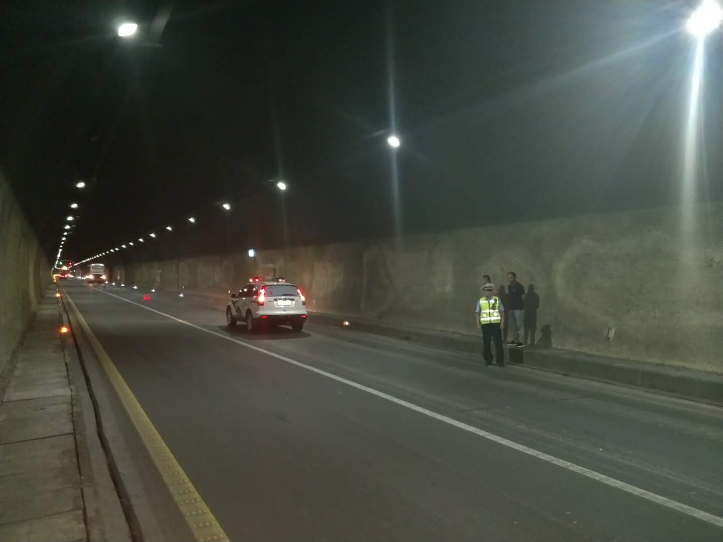 当天中午13时许,安阳高速交警一大队民警接到电话报警称:林州至山西方向太行屋脊隧道内有一辆大客车发生故障停在行车道上,车上载有三十多名乘客,情况紧急,大队民警迅速出警,并通知路政和抢险人员。到达现场后,民警立即采取措施,一边将警报器打开,提示来车方向车辆减速绕行,摆放安全警示锥,将行车道来车方向用安全锥临时封闭,实行快车道半幅通行,并维护好后方通行秩序;一边对车上乘客进行安抚,并让客车上所有人员下车到路边紧急避险台上,同时协调救援部门立即展开救援,分批将乘客送出隧道。经过两个小时的紧张救援,车上所有乘客安全转移,故障车辆也拖离高速,隧道隐患得以排除。