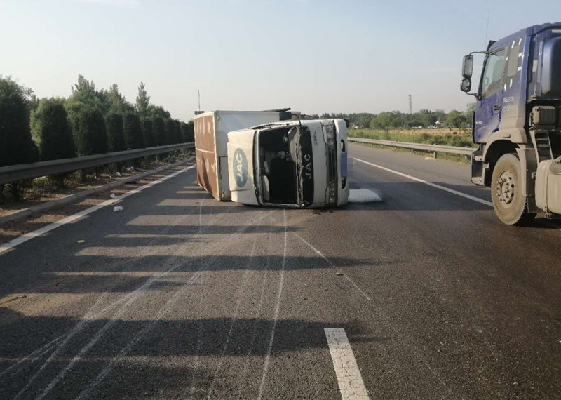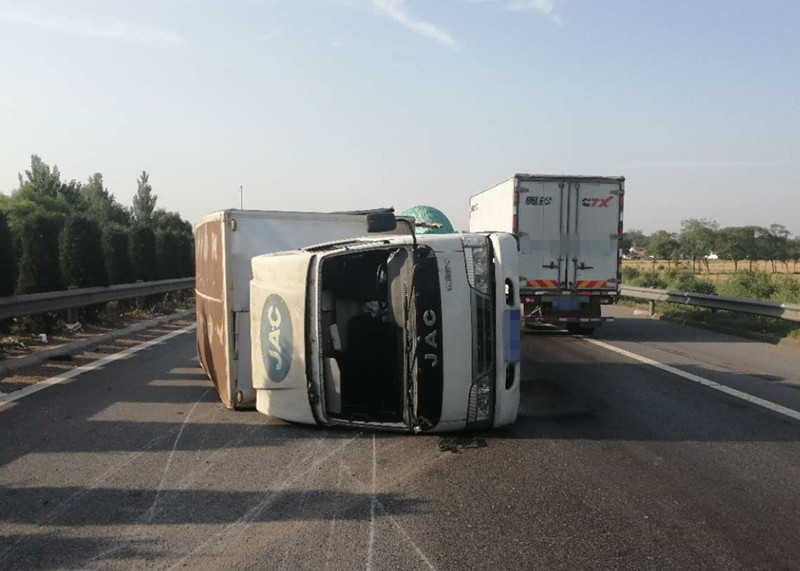 6月10日下午16时23分,濮阳高速交警支队路警指挥中心接到报警来电,在德上高速K231+530公里处一辆货车发生翻车事故,请求救援。