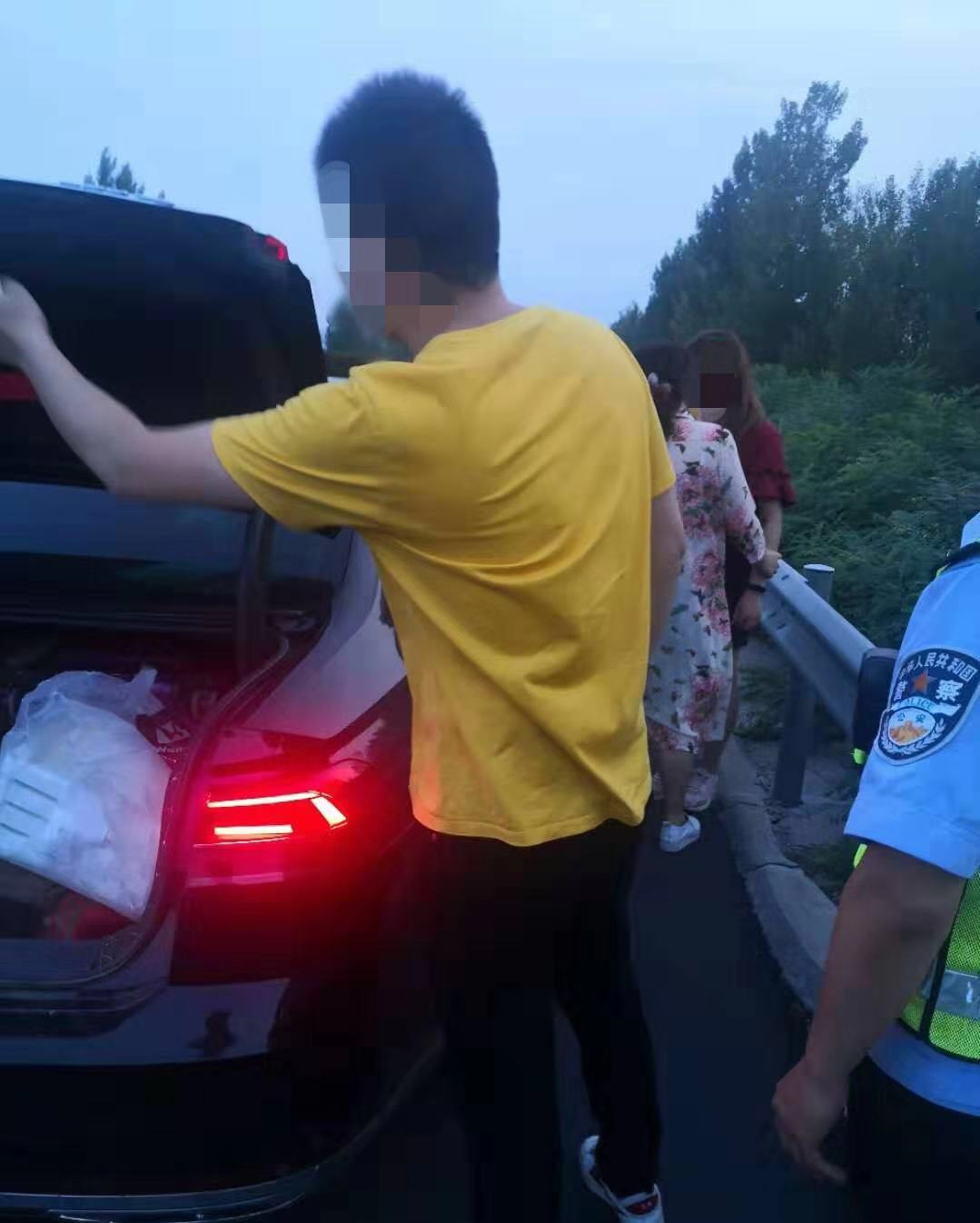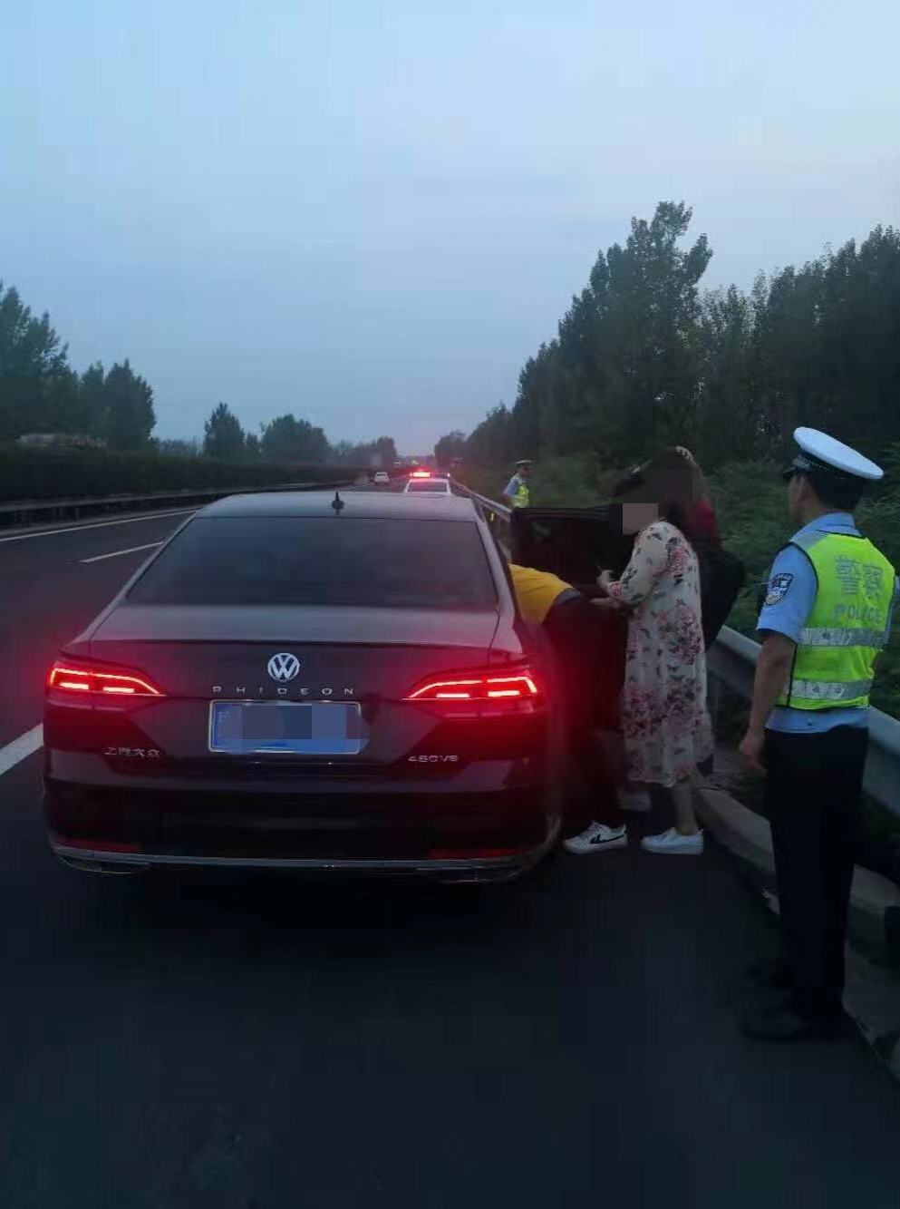 2019年7月22日晚上20时许,正在高速公路巡逻的平顶山高速交警大队民警刘延东、赵强等人,巡逻至兰南高速186公里处时,发现在道路右侧应急车道内停着一辆豫R牌照的黑色大众轿车,车外站着几个看似正在争论什么的人,而该车既未开启双闪警示灯,车后150米外也未放置任何警示标志,情况十分危险。民警刘延东等人迅速做好安全警示措施后上前查看。
