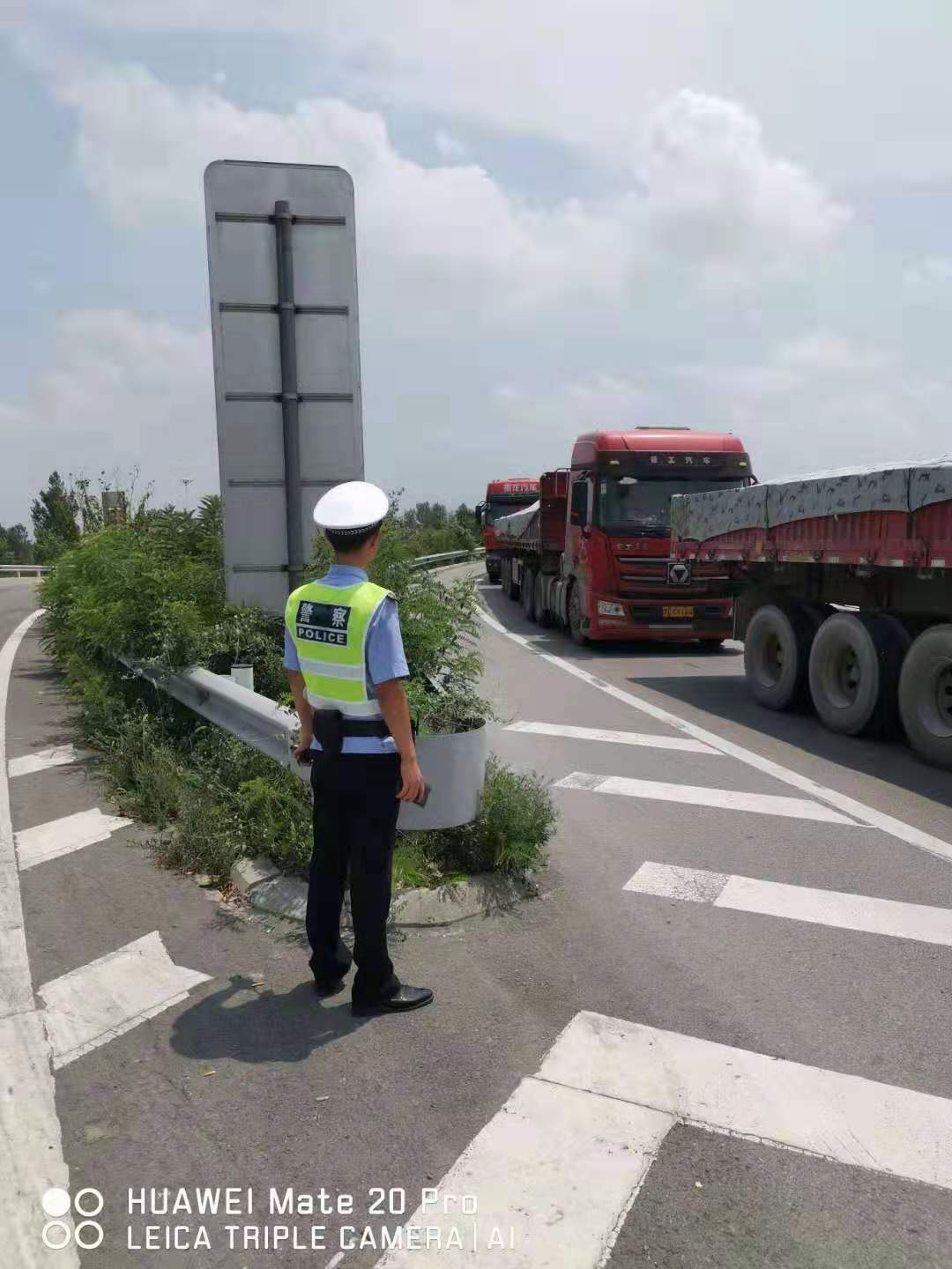 因为安阳东收费站车流量较大,大型牵引车较多,拥堵严重。四大队,时常在路面疏导交通,严查各类重点违法。午间温度较为炎热,执勤民警、辅警必须要着装整齐,他们头上顶着烈日暴晒无任何遮挡,脚下忍受着路面烘烤,隔着鞋都能感觉发烫。但是为了广大司乘出行的安全,防止不按规定超车、见缝插针等不安全,不文明的现象和占用应急车道、超载等重点违法行为。四大队执勤警员发扬“能吃苦、能奉献”的精神,在岗位上不惧炎热酷暑,尽忠职守,没有因为炎热而懈怠,反而战高温斗酷暑,保证战斗在一线,保护群众出行安全,确保安南高速的安全畅通。