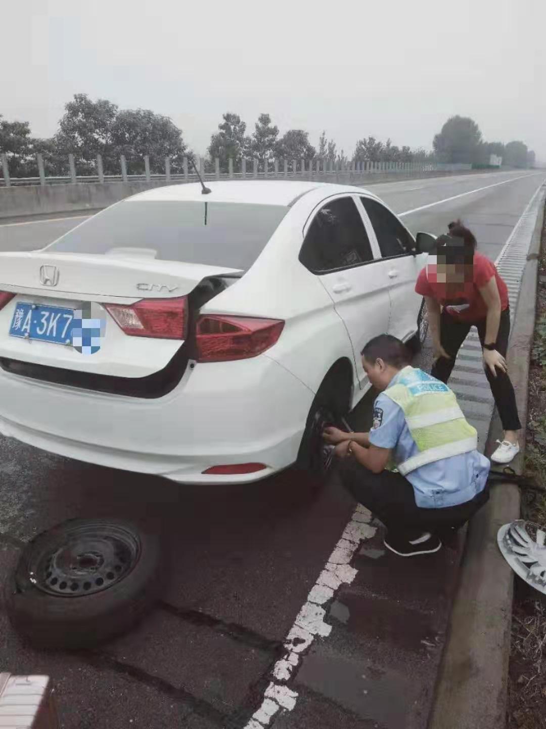 2019年8月12日上午10点左右,开封高速支队民警接到报警,称所辖区兰南高速86公里处,一名女子因车辆爆胎被“困”高速,请立即出警救助。民警赶至现场,看到女子因不会换胎,而站在车前感到不知所措,左右为难的样子。民警经过检查该车,发现只要进行换胎就可驾车上路,民警立即从车内拿出换胎工具,换胎过程中得知,该女子一人租赁机动车从广州出发赶往郑州,却不料行至此处遇困境,爆胎发生后,立即将车停在应急车道内等待救援。在民警多次磨炼出的换胎手艺下,没多久已完成换胎流程。女子对民警的及时救助感到非常感激,赞不绝口,民警告知女子车里备胎不可当“正胎”长时间使用,下高速后立即前往正规车辆修理厂进行检查修理,随后,女子在民警的叮嘱下开车离去!