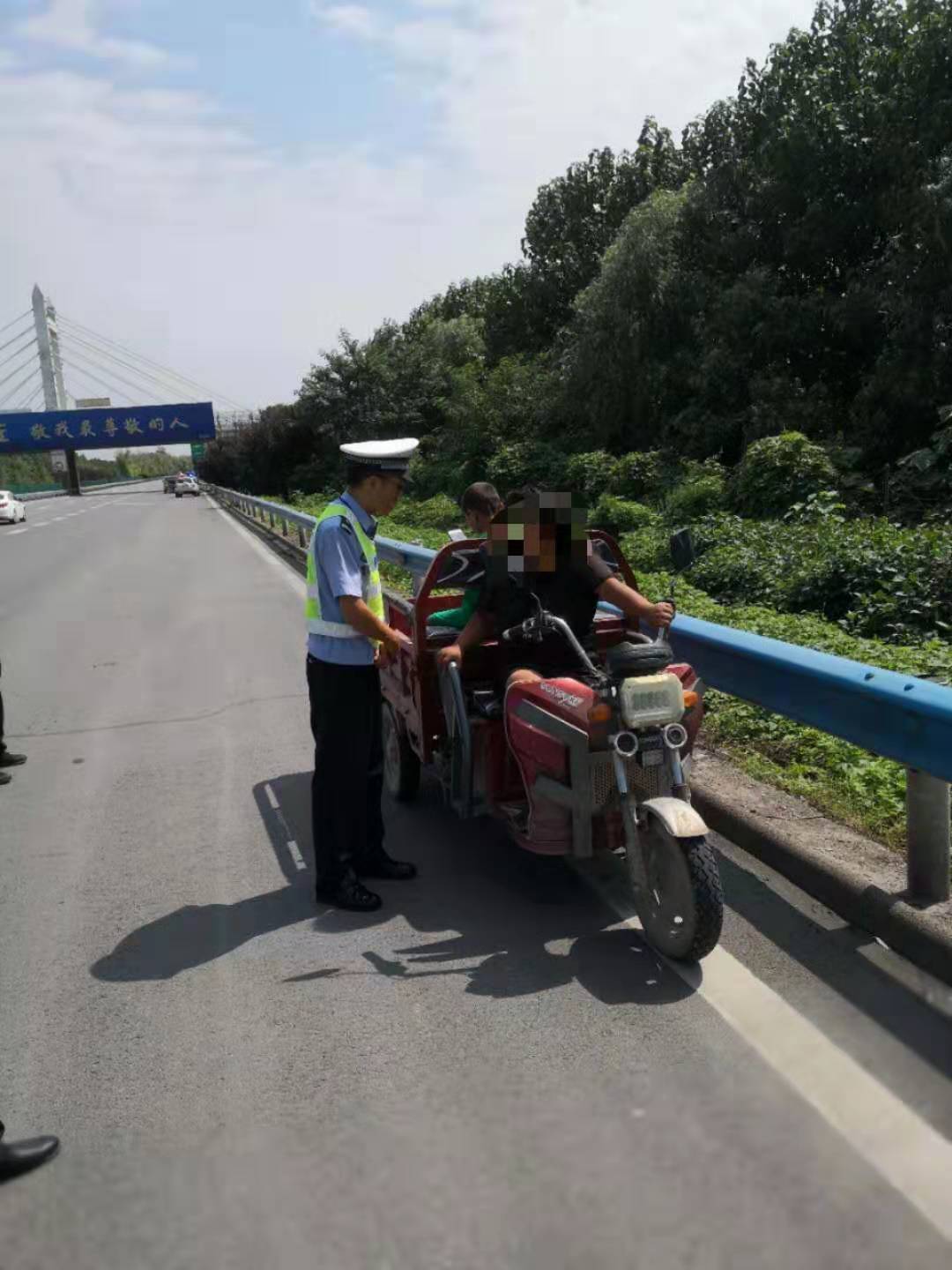 “停下!停下!快停下!”民警连声高喊喊停一辆逆向行驶在超车道内的电三轮车。在8月13号上午十时三十分左右,开封高速交警正在日常巡逻,在兰考服务区往山东方向,大概四百米处,一名女子骑着电三轮车,还带有一个三四岁左右的孩子,正在在超车道逆行!巡逻民警李磊和赵虎见况,马上采取措施,高声连喊将其喊停下来,并将其引导至安全地带!经询问,发现该女子智力疑似有问题,女子只知道自己是在高速打扫卫生的,刚开始上班一两天!对自己的工作意识不到位,认识不到危险,还认为和在普通公路打扫卫生工作一样!经过民警们耐心的讲解和规劝,使其慢慢明白她此次行为的危险性,然后将其带离高速,安全送至服务区妥善安置。