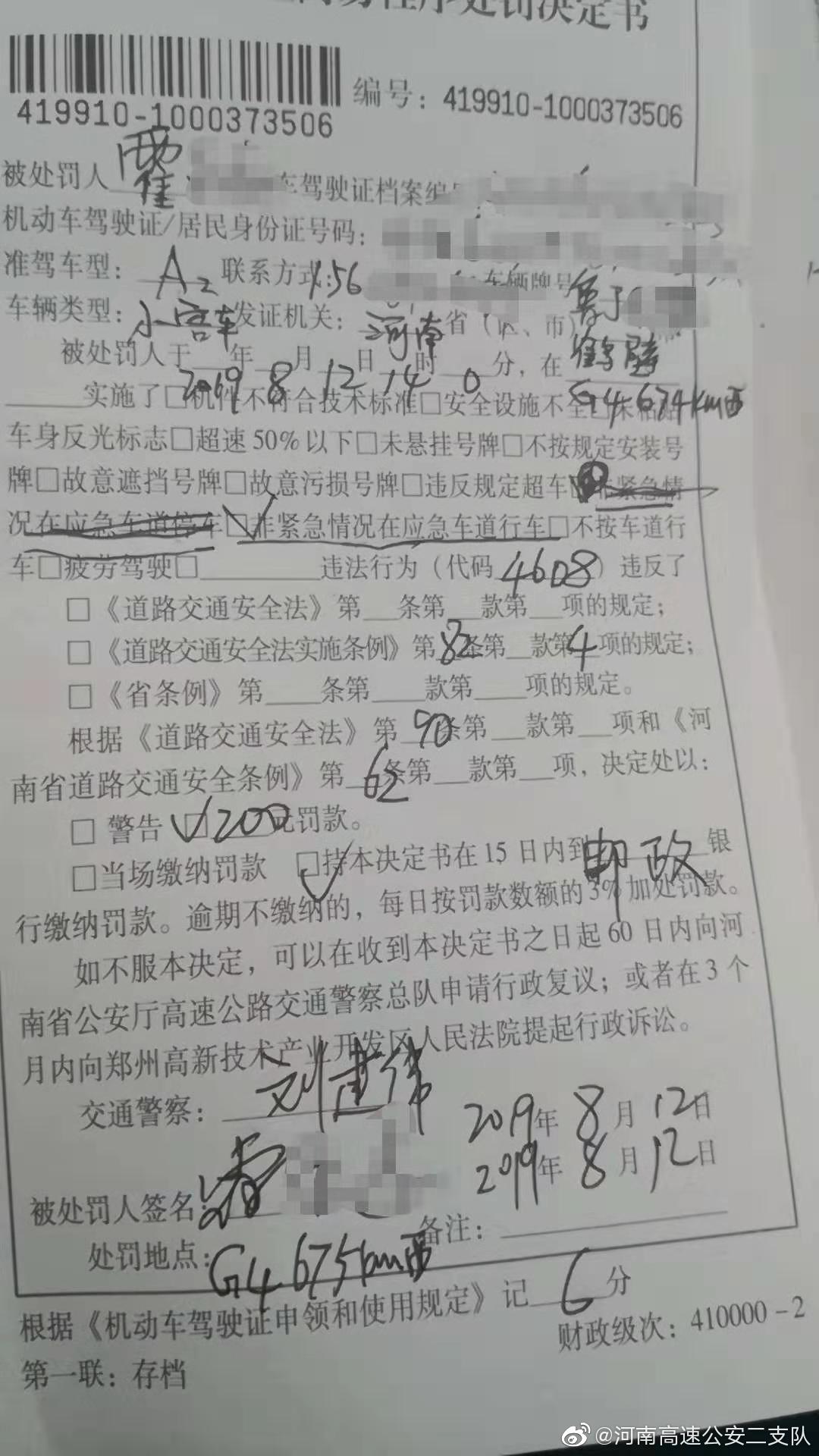 事情是这样的,2019年8月12日14时许,河南高速交警二支队副支队长刘建伟、事故处理民警蔡杰驾乘警车赶往京港澳高速公路675公里处事故现场,由于道路出现车辆排队缓行情况,刘建伟就拉响警报沿应急车道行驶,一路比较顺畅,快到事故现场时,一辆白色奥迪越野车沿应急车道行驶,听到警报声就慌忙向行车道拐,无奈车太多,没有拐过去,留一半车身在应急车道,蔡杰下车向驾驶员查验了驾驶证、行车证,告知驾驶员霍某到事故现场前方接受处理。