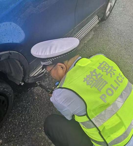 9月2日下午15时30分左右,下着小雨,平顶山高速交警大队民警司闯魁等人巡逻至宁洛高速叶县北附近时,发现一辆蓝色小轿车停于路边,一男子正在路边蹲着。民警随即上前询问,方知该男子驾驶的车辆由于轮胎老化行驶过程中爆胎了,幸亏采取了紧急措施,才没有发生人员受伤事故。为保障该车及其他车辆行车安全,民警一边做好安全保障措施一边在雨中迅速为该车换备胎。雨水虽淋湿了民警的衣服,但是这一幕却让惊慌失措的车主及车上乘员感到安心与温暖。