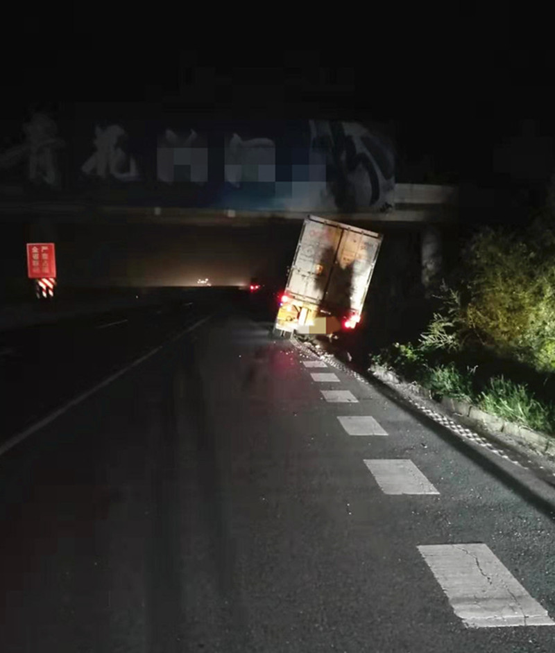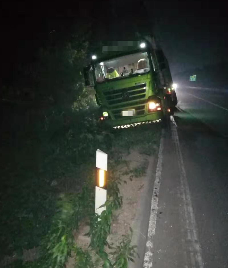 连夜开车疲劳驾驶 货车跑到边沟里