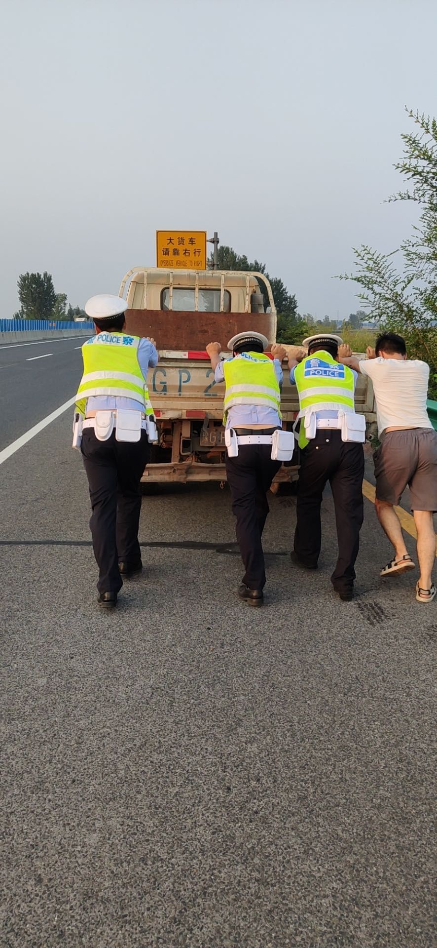 9月5日下午,安阳市高速交警一大队民警、辅警又化身“推车工”,及时帮助轻货驾驶员脱离危险,这样全心全力为民安全出行保驾护航的行为,受到了驾驶员的连声称赞。