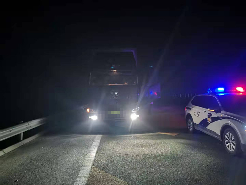 原来这并非一名精神疾病患者,而是一名大货车驾驶员,夜晚正在给车整理篷布。民警立即上前制止该驾驶员的行为并在后方设置安全防护区。在询问时驾驶员说出了令巡逻民警既欣慰又无语的话:“我主要还是觉得在高速公路上治安好,民警一直都很辛苦的在巡逻,没有人敢偷东西,以前在货场总是丢失货物,都丢了好几万了,不敢在货场休息了。”