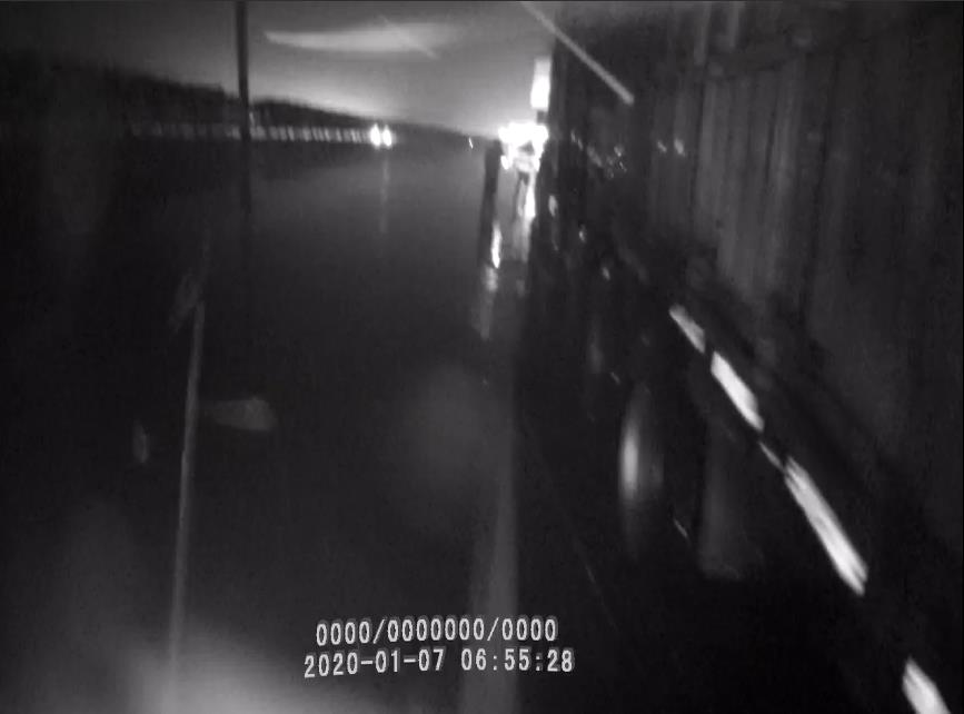 2020年1月7日,凌晨6时45分,开封高速交警上路巡逻,行至日兰高速兰考西收费站附近,由于雾气弥漫、雨雪封路,影响视线,加上未发现任何标志和灯光,模糊觉得前方疑似一辆车在应急车道内停靠,民警临近车前才看清,果然是一辆后方未摆放标志、未打开双闪灯光的半挂车。