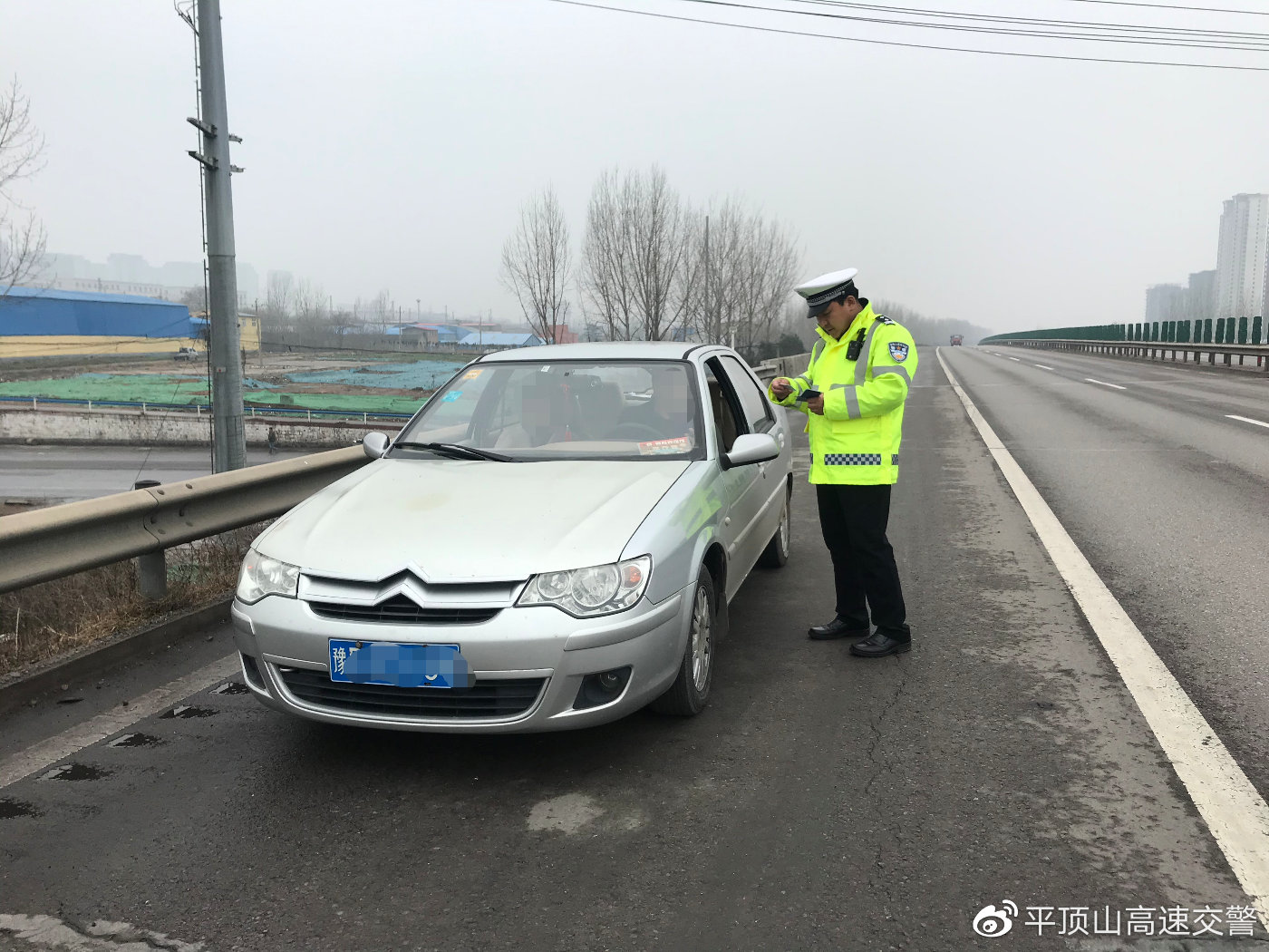 1月16日下午13时许,平顶山高速交警大队民警王刚领、刘兵兵巡逻至宁洛高速洛阳方向K613公里处时,发现一辆豫D牌照小型汽车停在应急车道内。车辆既没有打开危险报警闪光灯,也未在车尾放置停车警示三角牌,周围车辆呼啸而过存在安全隐患。