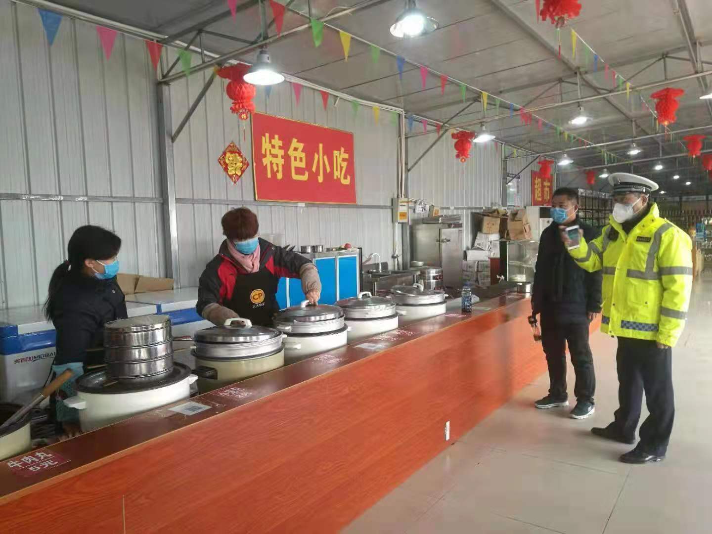 2020年1月28日,疫情形势严峻,我省已启动突发公共卫生事件一级应急响应,安阳市高速支队一大队对辖区内高速公路服务区的人员、餐饮、卫生、应急防护措施等进行督导检查。大队长万光要求服务区负责人令服务区所有工作人员学习防护相关知识,佩戴防护口罩。万队予以现场讲解和工作指导,服务区负责人和工作人员对自身安全防护和疫情防控有了进一步的了解。
