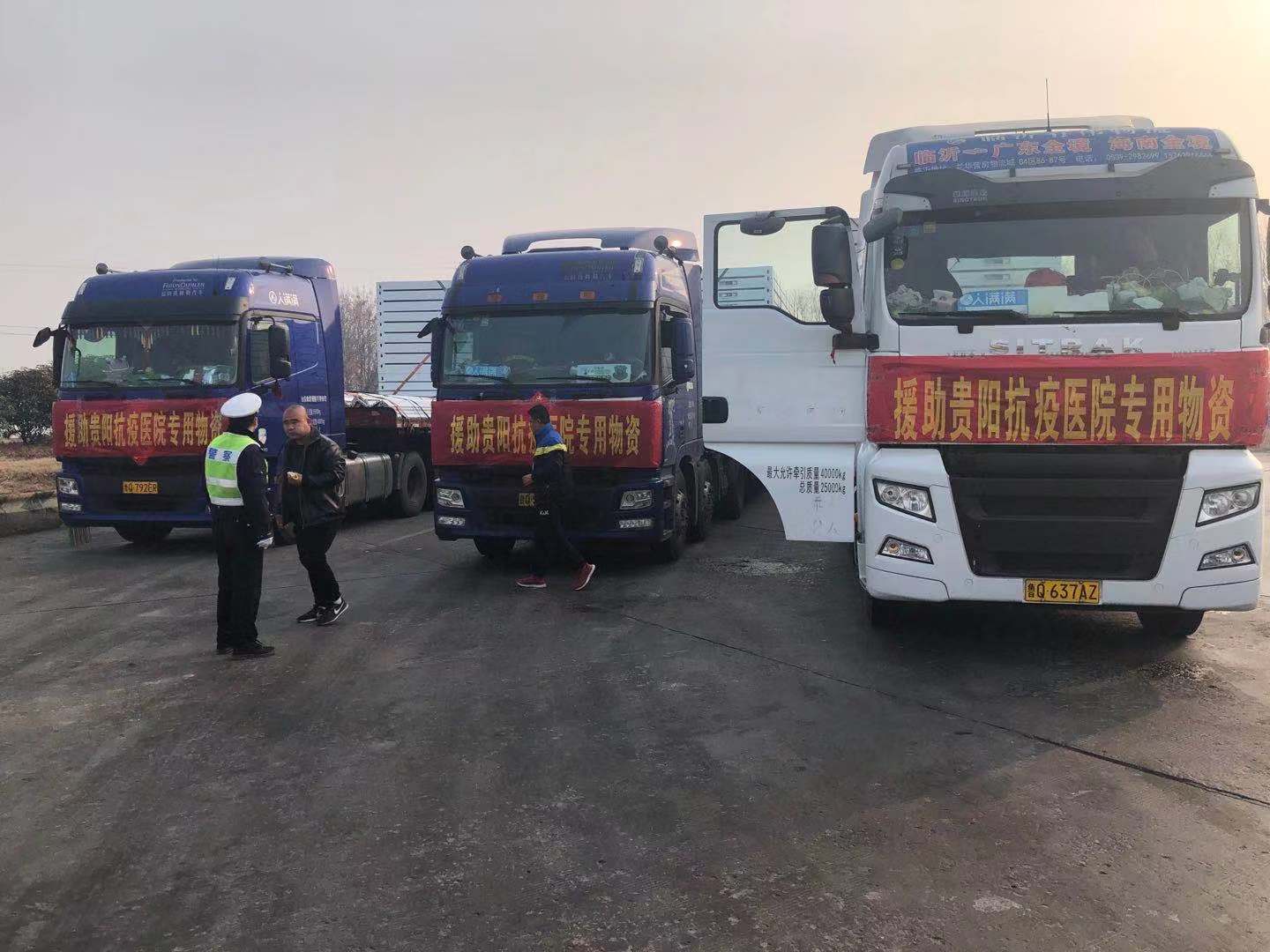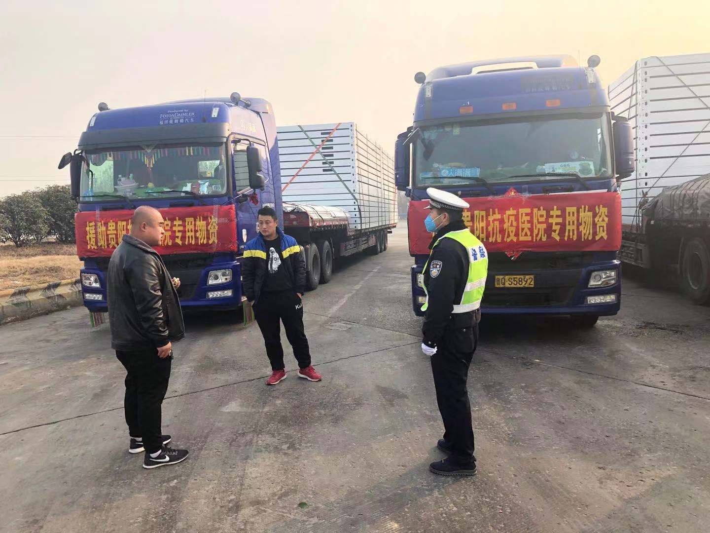 2月4日上午由临沂发往贵州疫区的防护物资运送车队途经开封,要在兰考服务区停车休整,开封高速交警为确保车队顺利通过本辖区,抽调专人在兰考服务区迎侯,不仅协助驾驶员做车辆的保养检查,为车辆加油,还给车队驾驶员提供行车过程中所需的必要物资,而且在车队休整完毕后又将车队护送出本辖区。