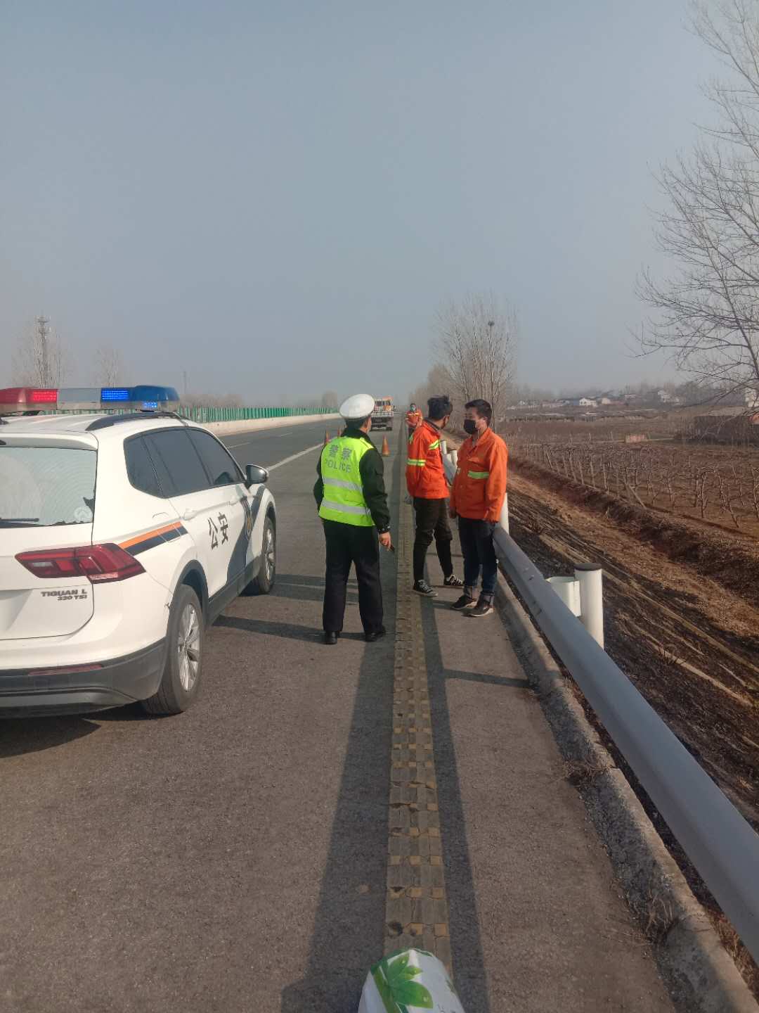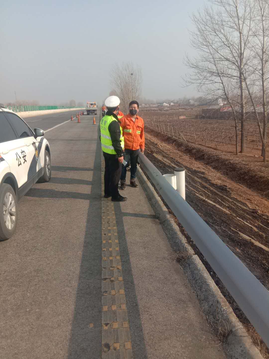 为有效应对新型冠状病毒感染的肺炎疫情,保障道路交通安全,2月14日,安阳高速交警四大队积极开展路面隐患排查,全力做好疫情联防联控。